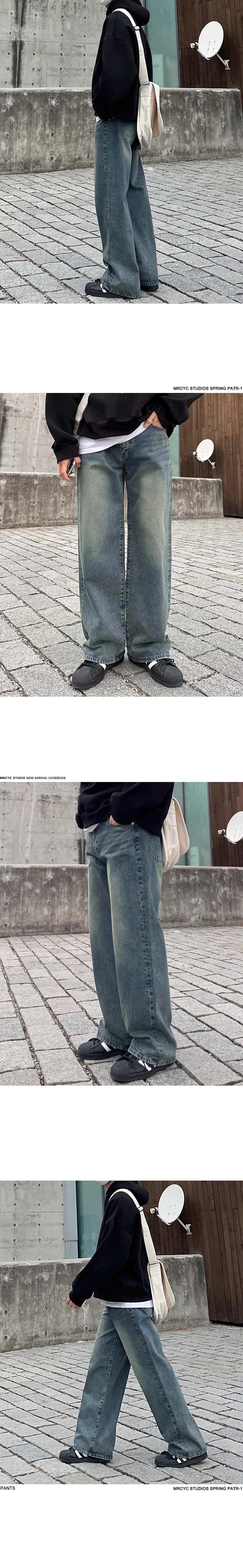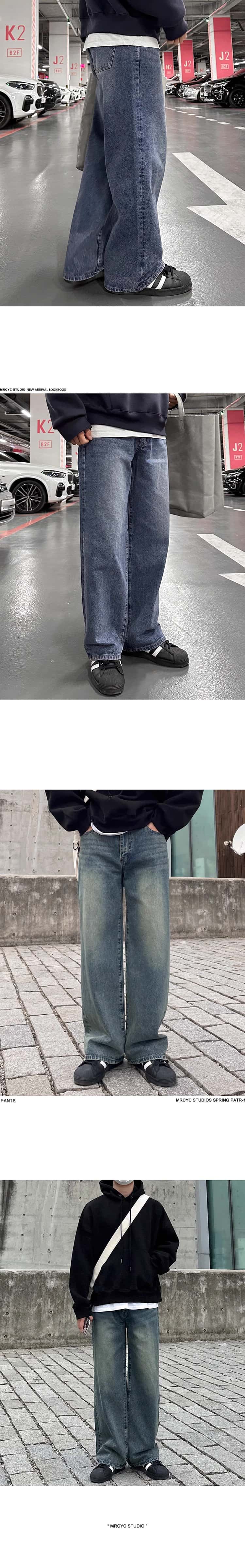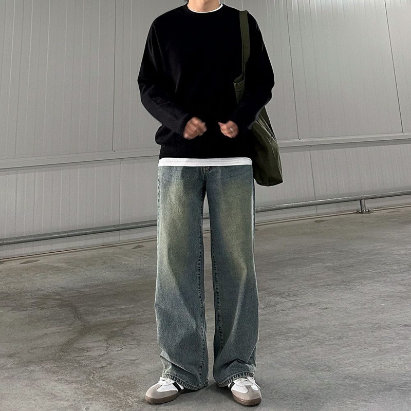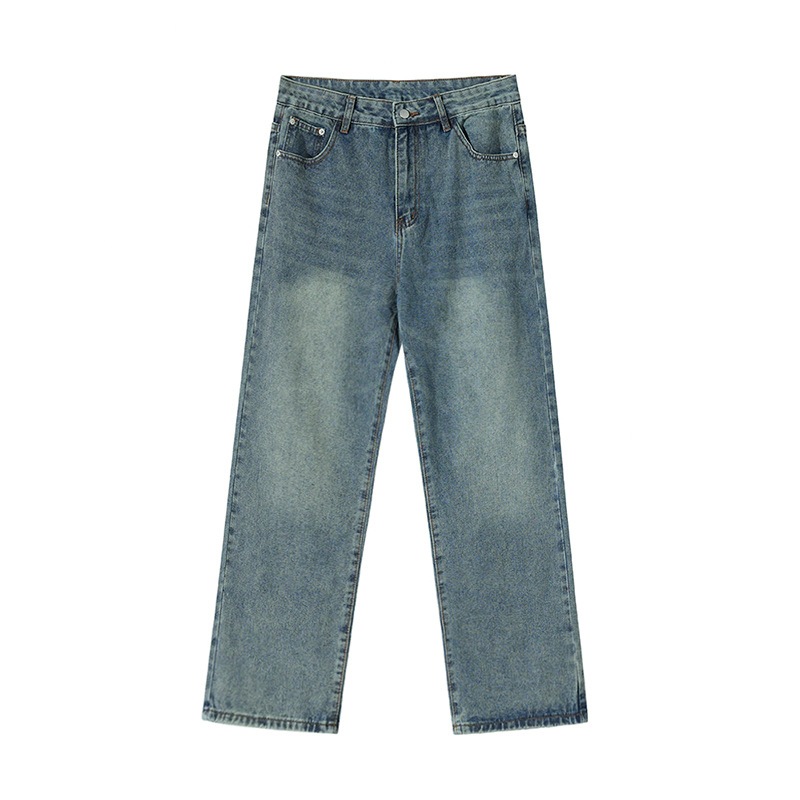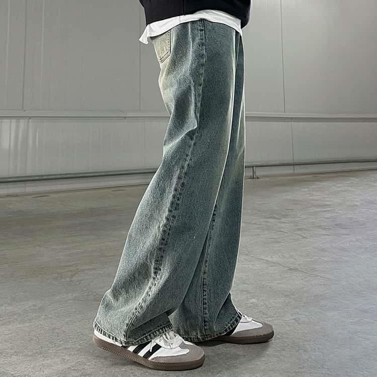 レトロなウォッシュ加工を施したオールドジーンズ メンズ 秋の新作 韓国版トレンドのゆったりワイドストレート カジュアルパンツ デニム ジーンズ