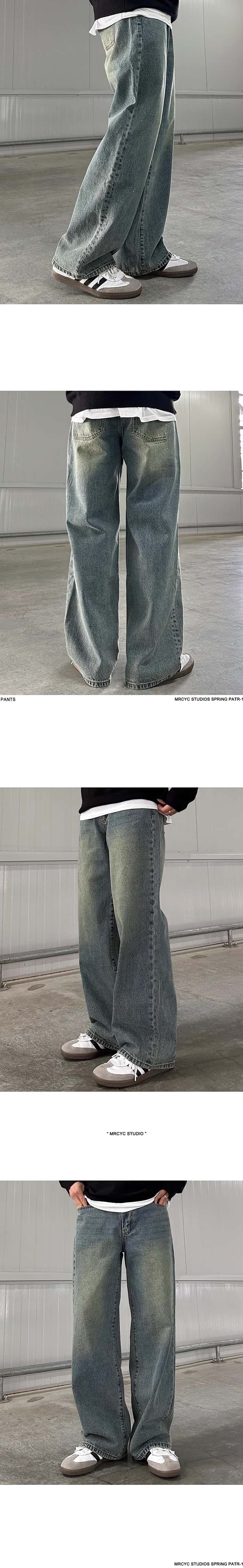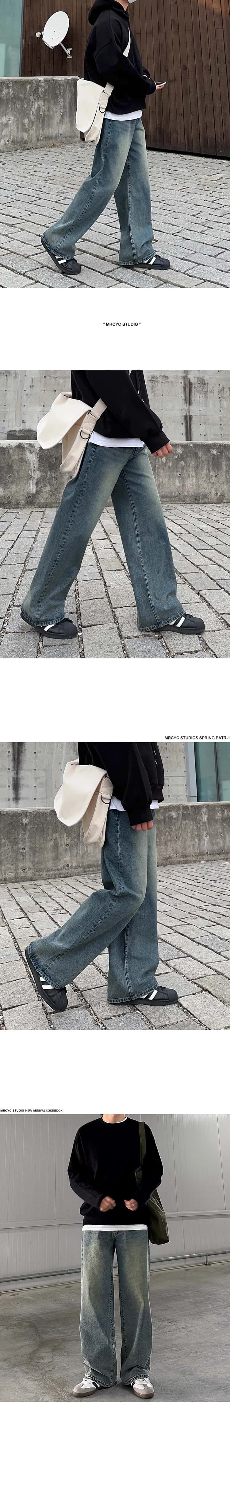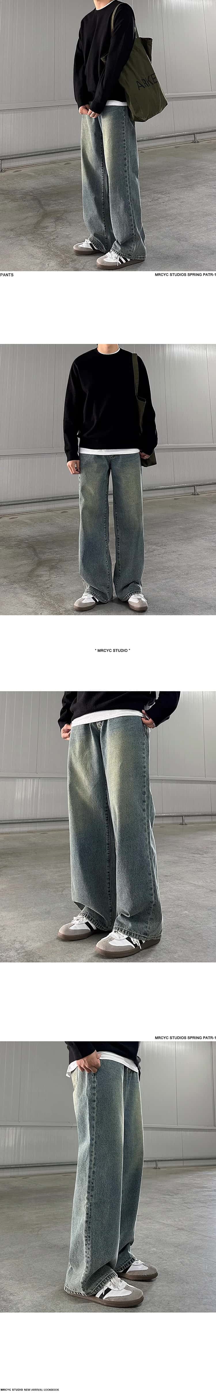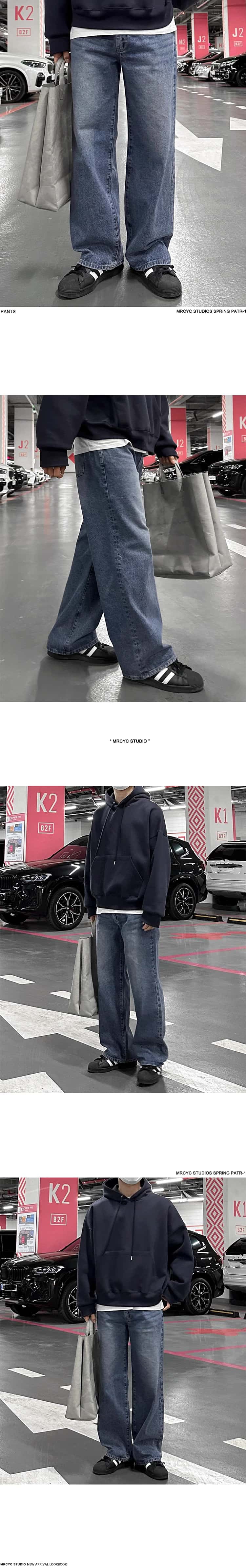 レトロなウォッシュ加工を施したオールドジーンズ メンズ 秋の新作 韓国版トレンドのゆったりワイドストレート カジュアルパンツ デニム ジーンズ