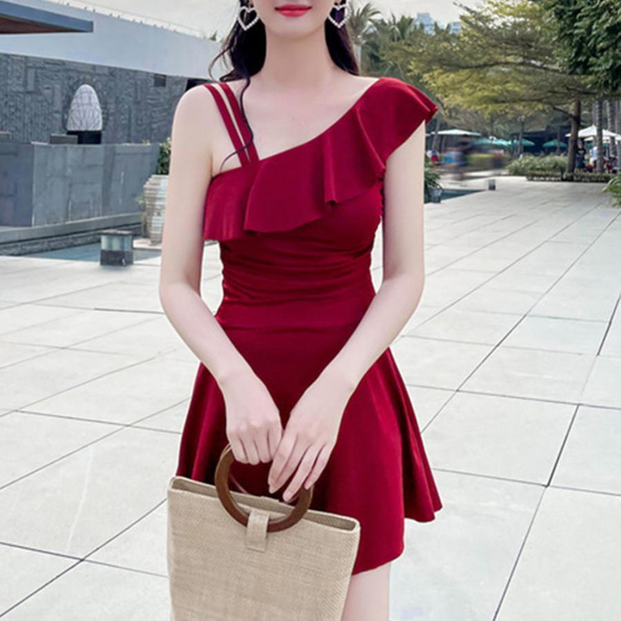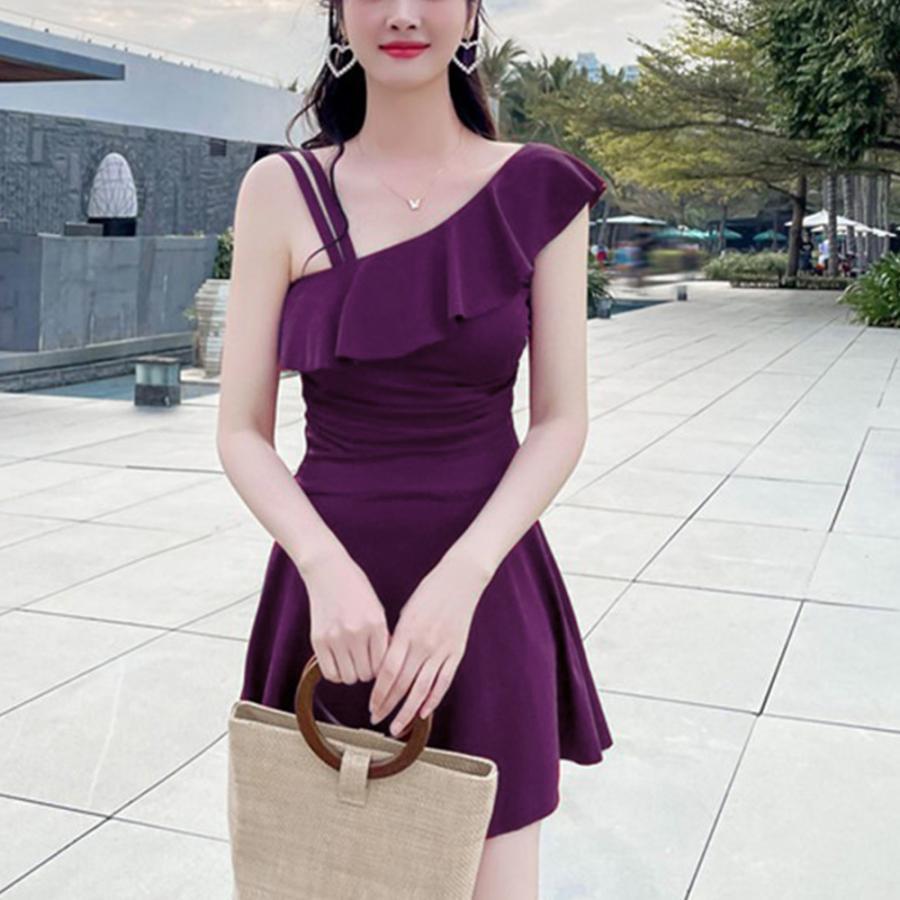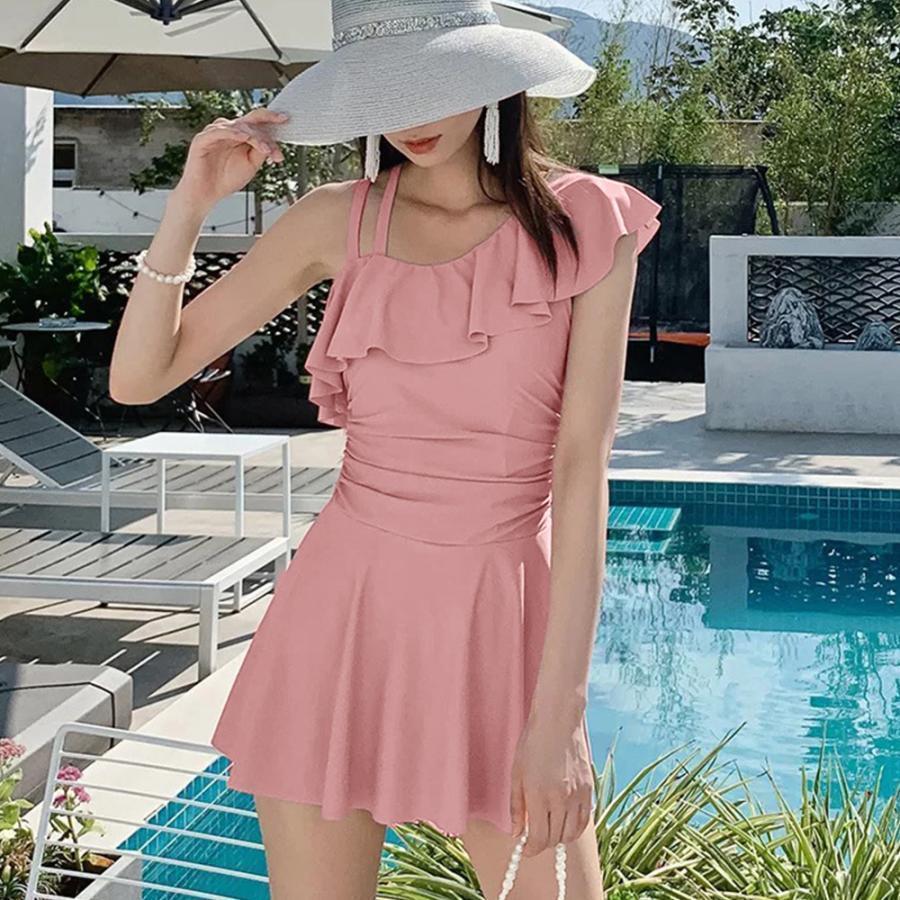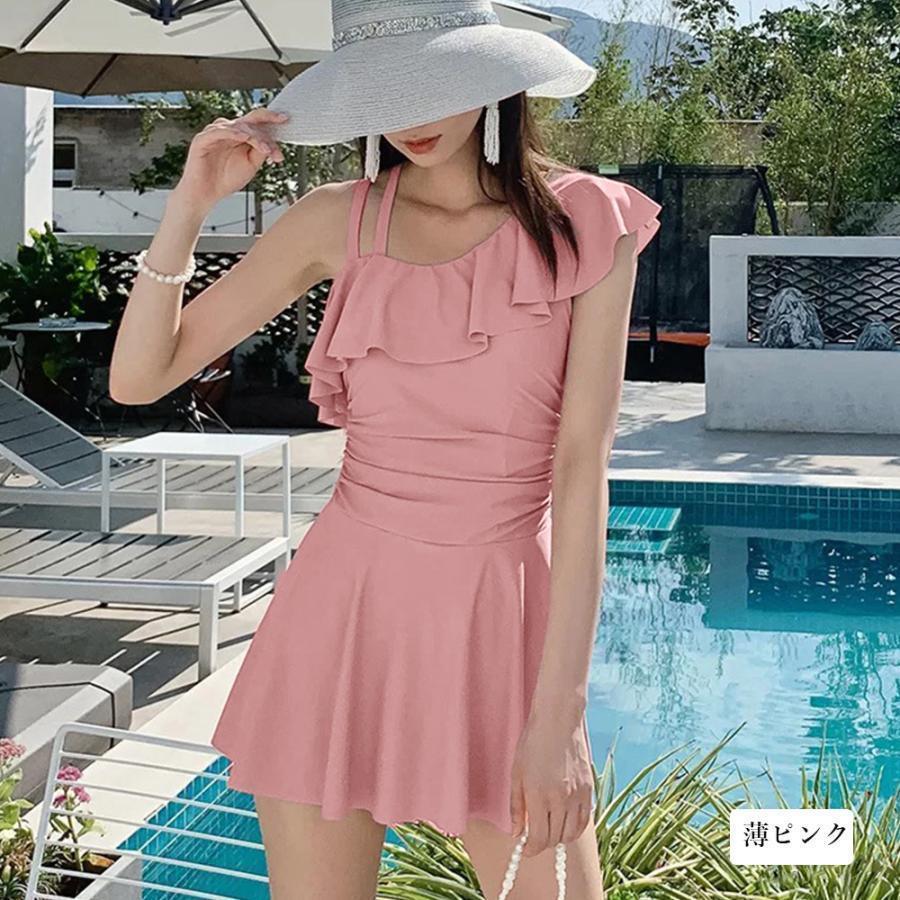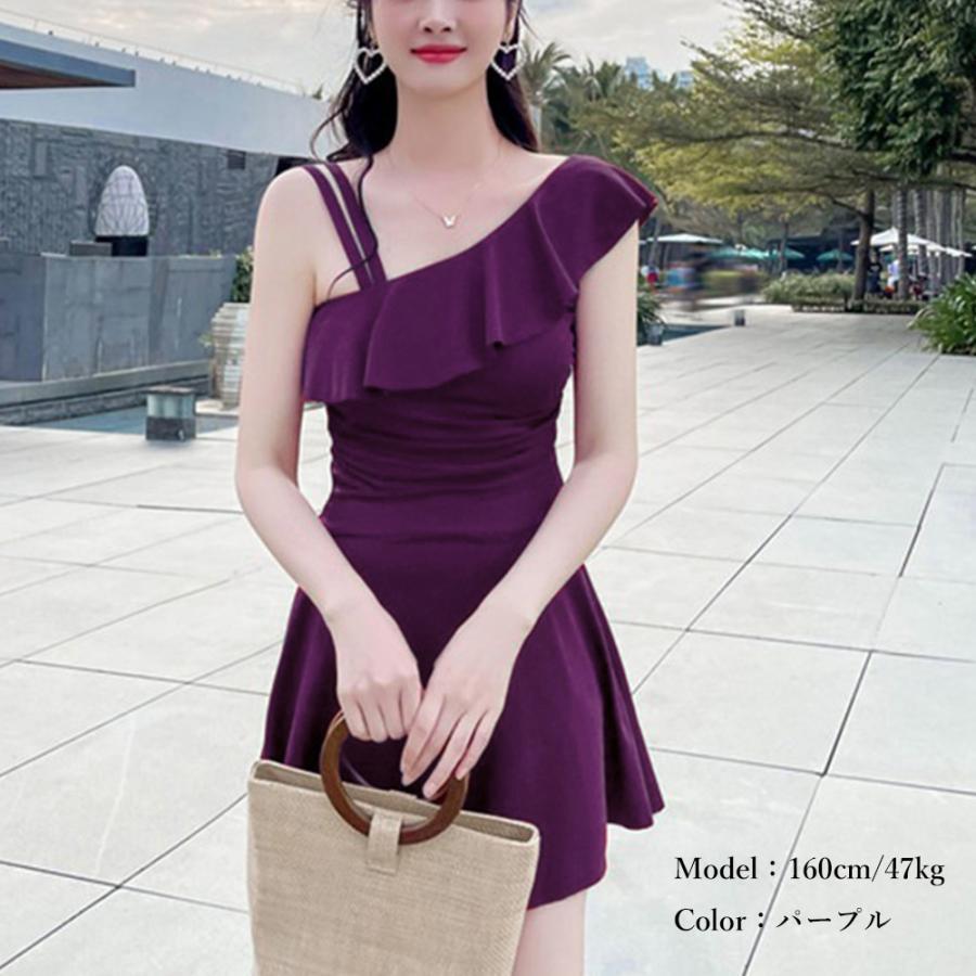 ワンショルダーワンピース 春水着 体型カバー ワンピース水着