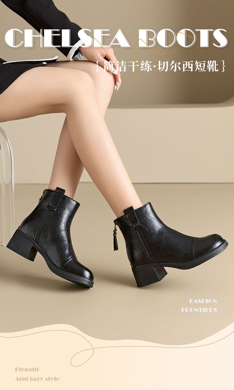 冬の汎用性の高いレトロな革のマーティンブーツ女性スリム厚底チェルシーブーツラウンドつま先ファッション低 シリンダーブーツ ショート ミドルブーツ