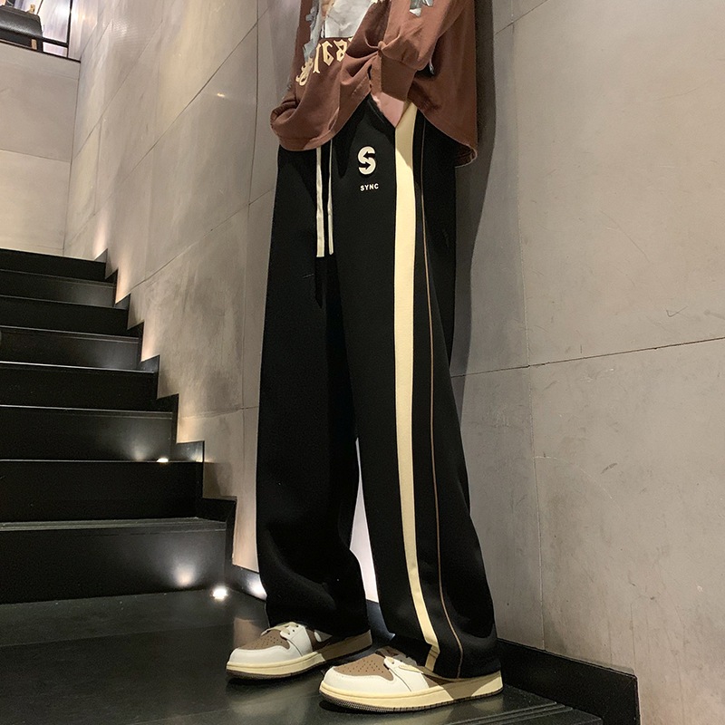 秋と冬の新しいカジュアルなズボンの男性と女性の緩いストレートズボンのトレンドの同じ韓国語版とサイドストライプ汎用性の高い長ズボン男性 ロングパンツ
