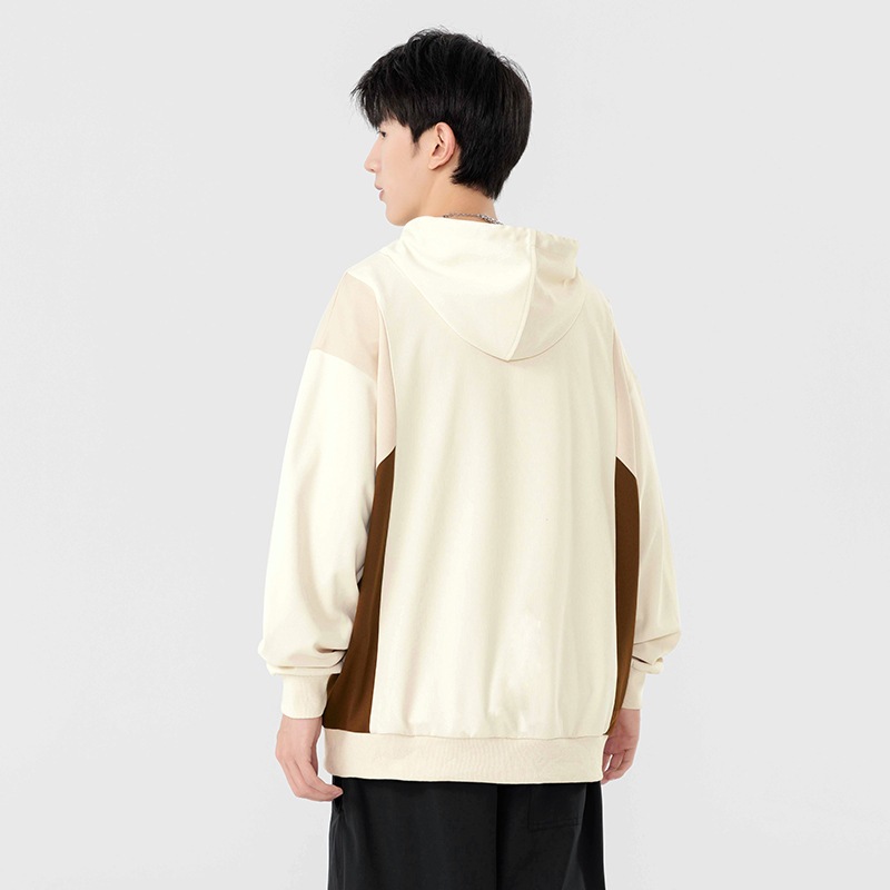 カジュアル フード付きトレーナー メンズ アメカジ 秋新作 カラーブロッキング スプライシング デザイン ゆったり 長袖 トップス 紳士服 フード付き