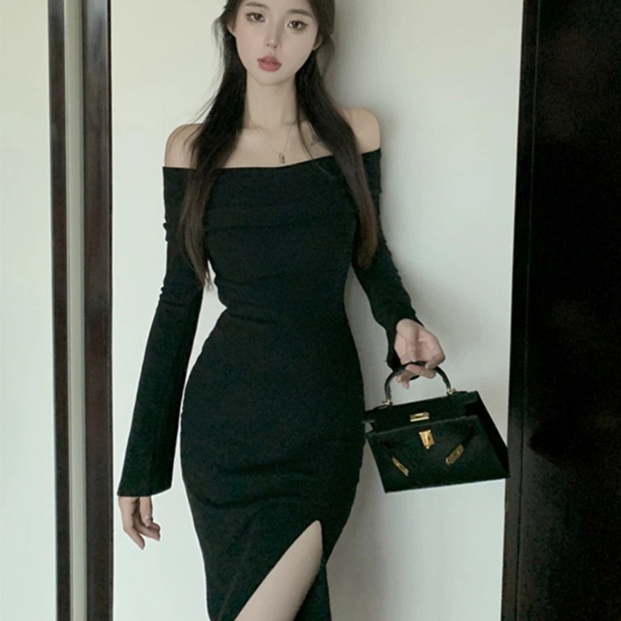 レディース フォーク本 韓国ワンピス やせて見える ロングワンピース ワンショルダー ハイウエスト ワンピース その他 ワンピース ドレス