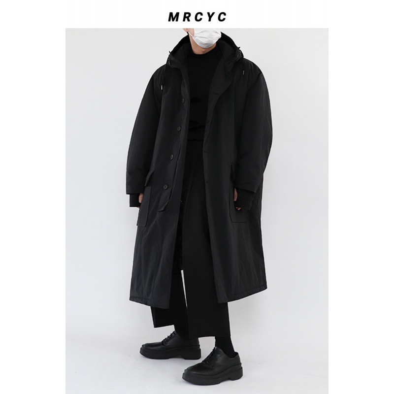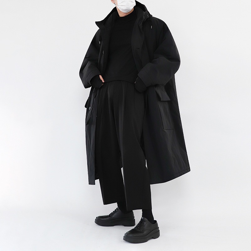 コットンメンズミディアムレングス冬厚手コートジャケットタイドインスコットン服韓国版ゆったりフード付きコットンジャケット ロングコート