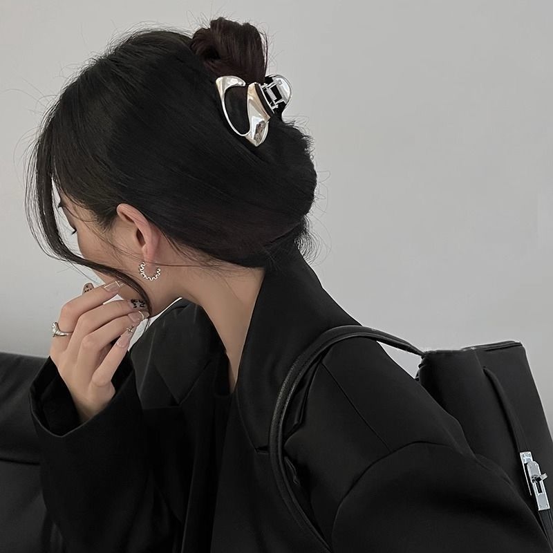 ヘアクリップ寒風シルバーの小さなスクランチークリップ メタルクリップ ヘアクリップ