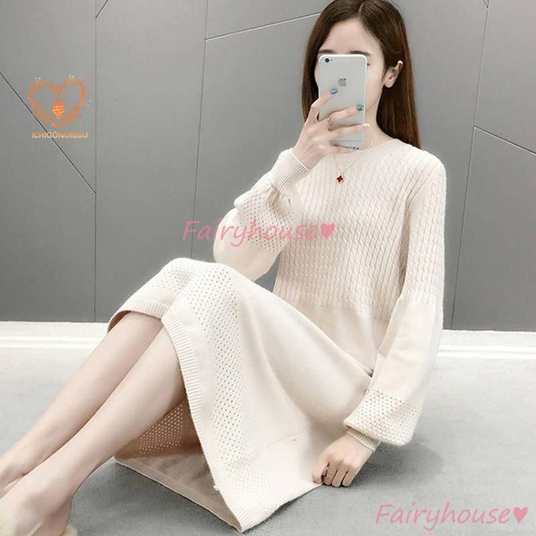 ニット レディース 40代 秋冬 長袖 無地 Aラカート ロング丈 ニットインナー 大人上品 オシャレ韓国風 ゆったり 30代 50代 ロングスカート