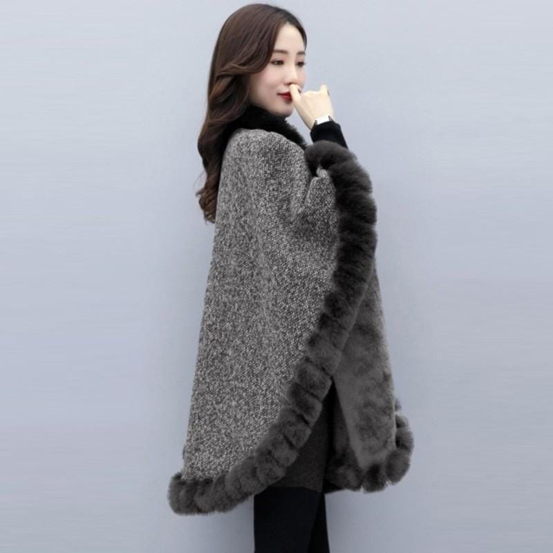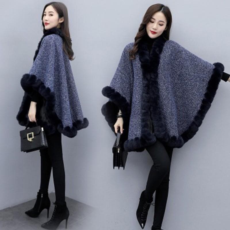 新品 大人気 ケープコート チュニック丈 冬 レディース ファー トップス 膝上 裏起毛 ビッグシルエット ゆったり 体型カバー 防寒 秋 ポンチョ