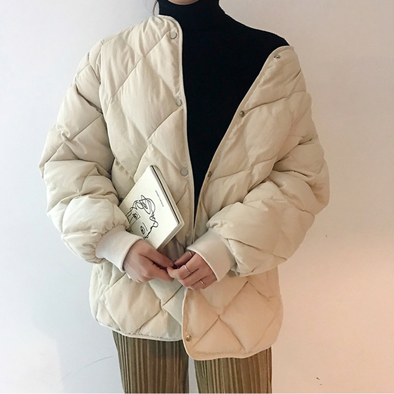 秋冬韓シンプル菱格厚綿長袖丸襟コート綿服学生女性 ダウンジャケット コート