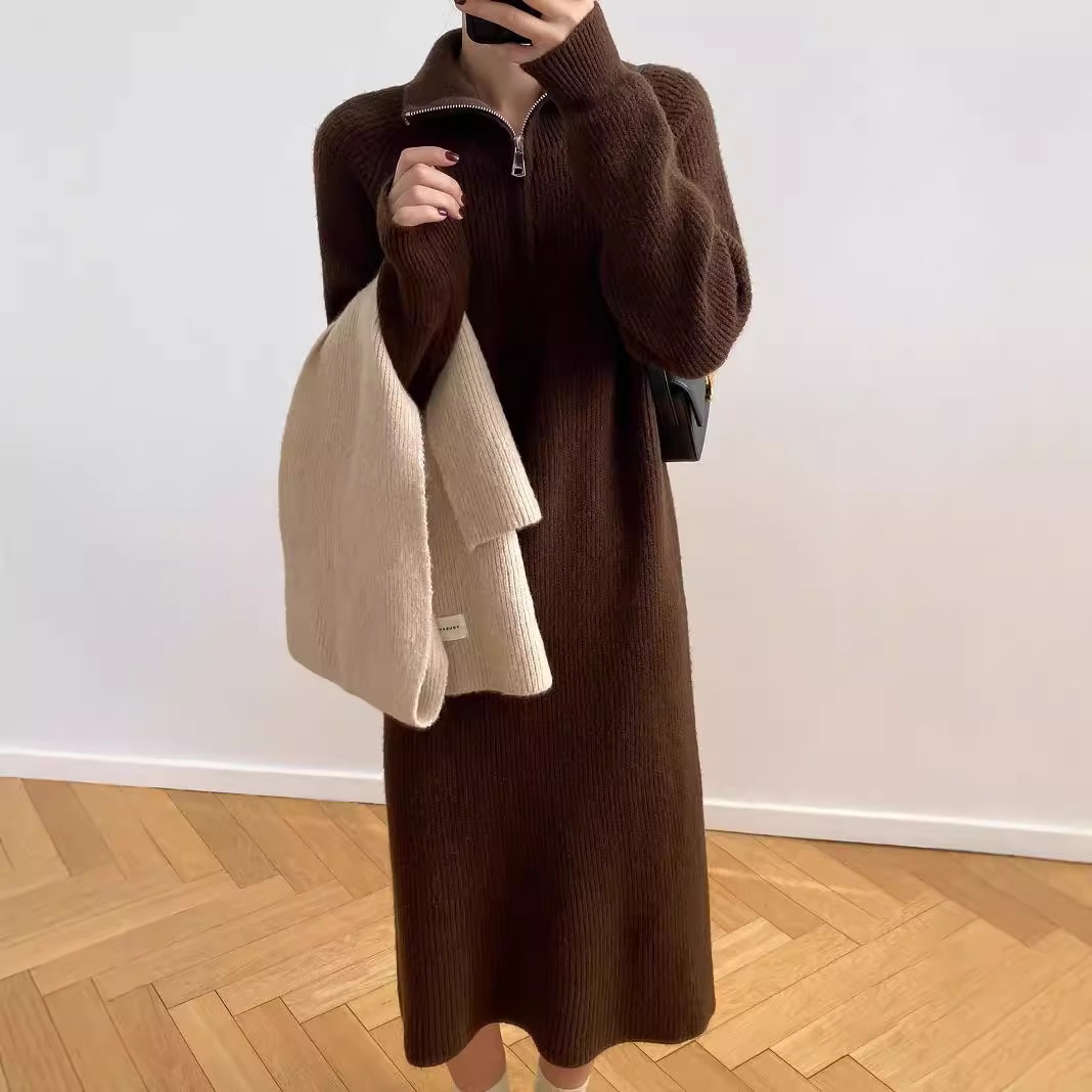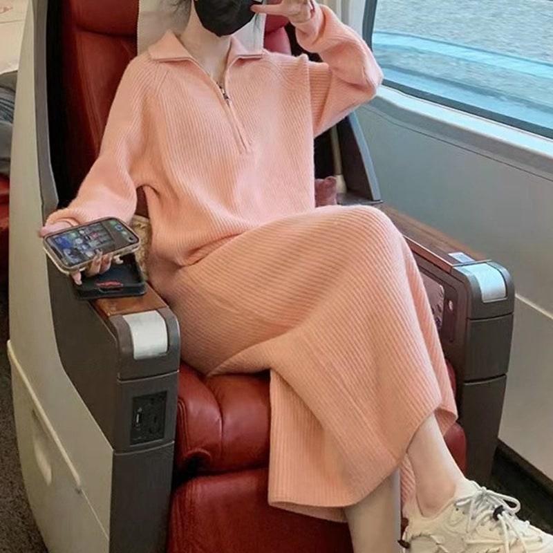 ニットワンピース レディース 秋冬 ロング ハイネック セーター ワンピース ストレート 長袖 ボトムス スカート ニットワンピ