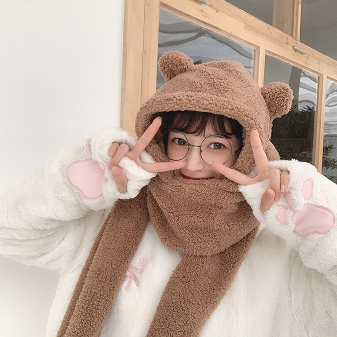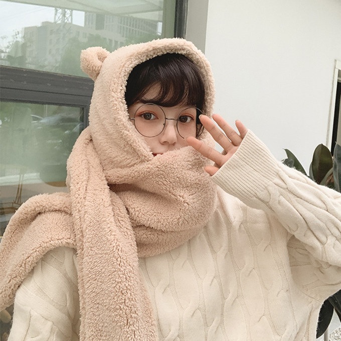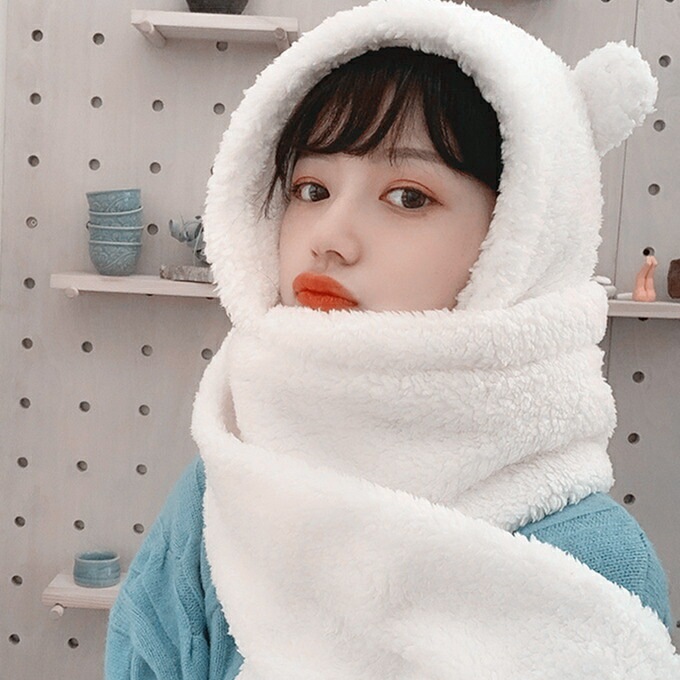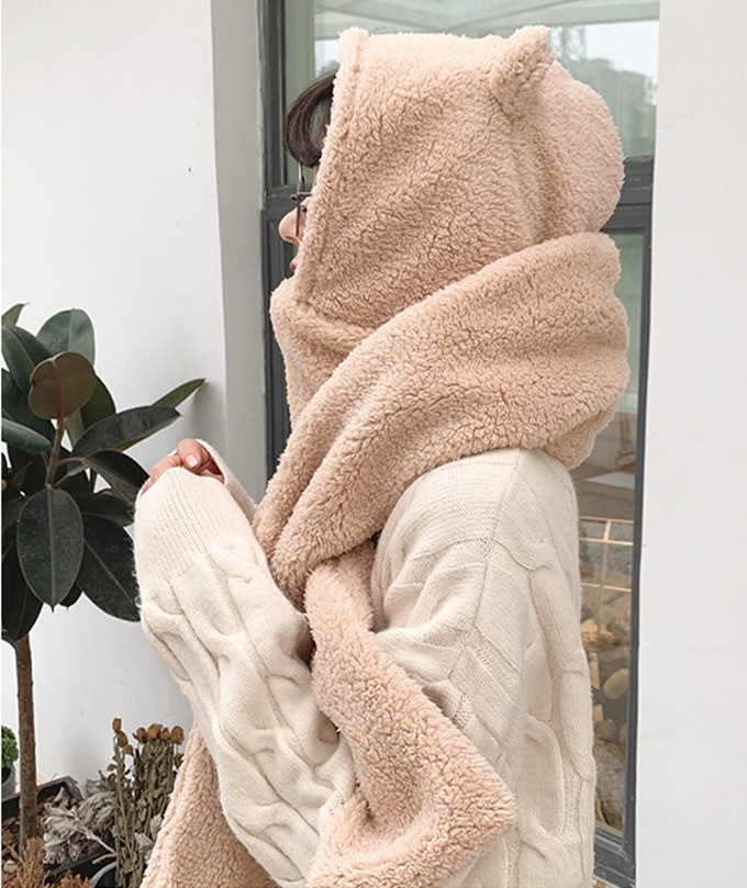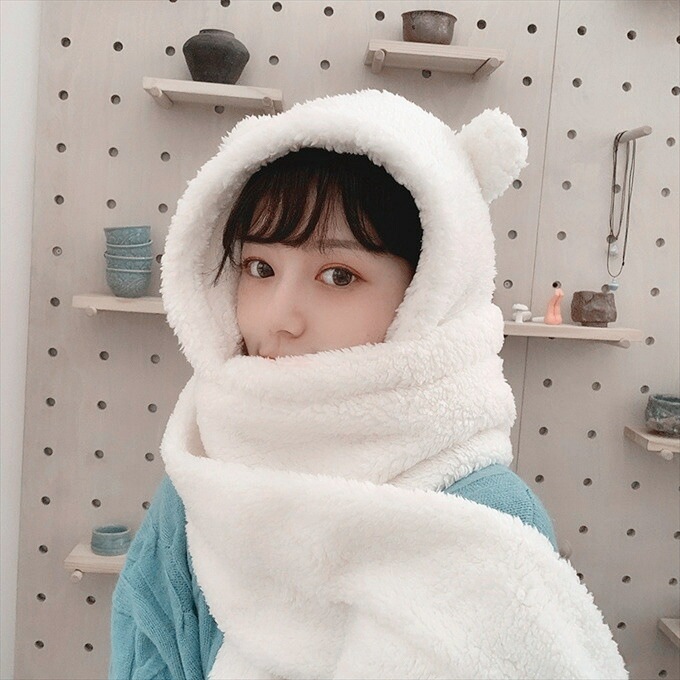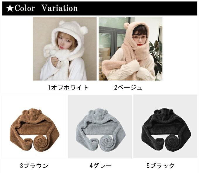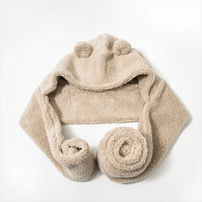 ファー ネックウォーマー ハット ビック ふわふわ 厚手 帽子 フード ミミのついたアニマルフォルム ぼんぼり みみ ボア ロング フェイクファー