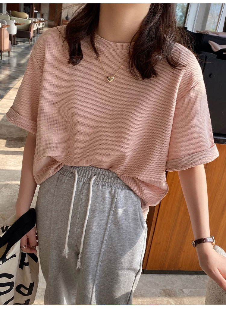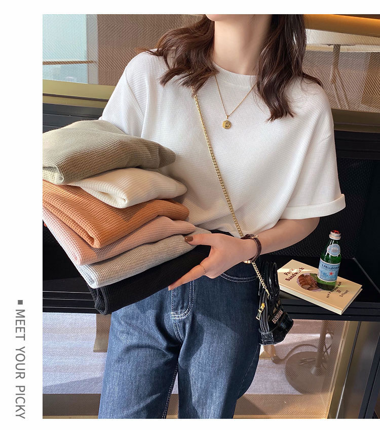 半袖女性2022年新型夏デザイン感小衆Tシャツ純色ins潮ゆったり半袖トップスワッフル Tシャツ カットソー