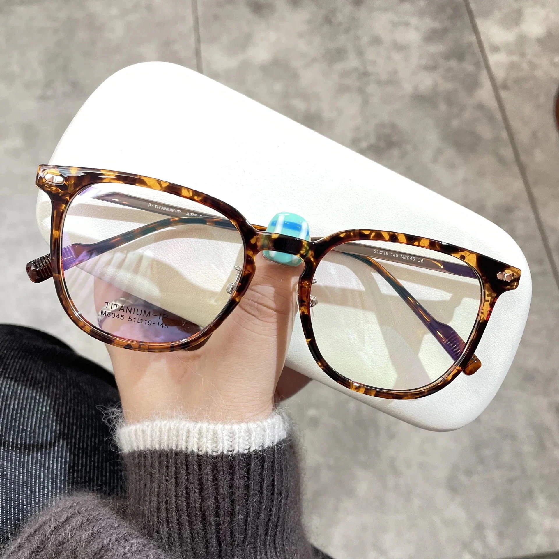 Color: オリーブグリーン クリアグレー ヒョウ柄の枠 わかりやすい 明るい黒い枠