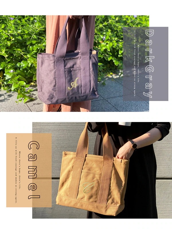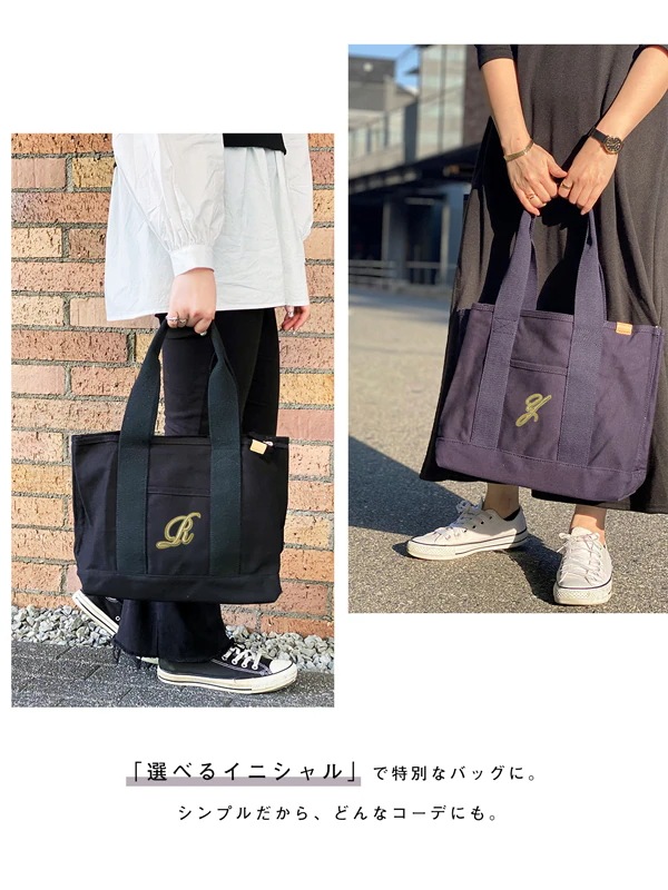 2025 エコバッグ 大容量 レディース 仕切り イニシャル キャンバス ファスナー付 肩掛け 大きめ トラベル 旅行 バッグ 仕切り多め A4 プレゼント ギフト トートバック 韓国ファッション
