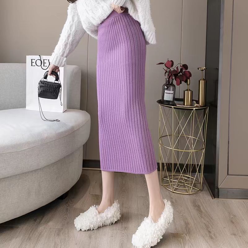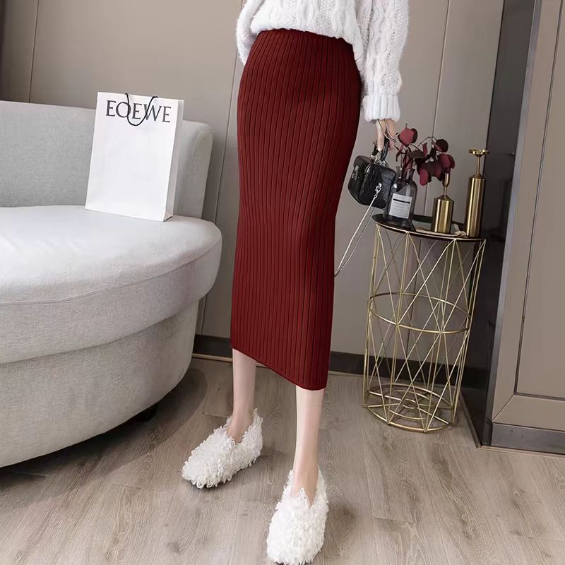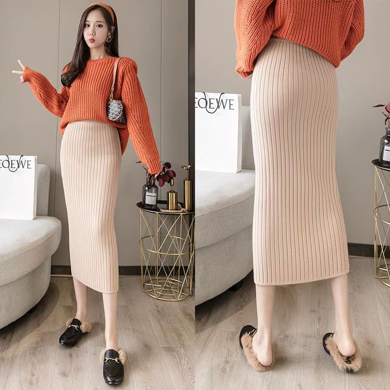韓国ファッション 5Color選べま フェミニンラインで上品なニットタイトスカート ニット生地 だから履きやすい 秋 冬 春使用 ニットスカート
