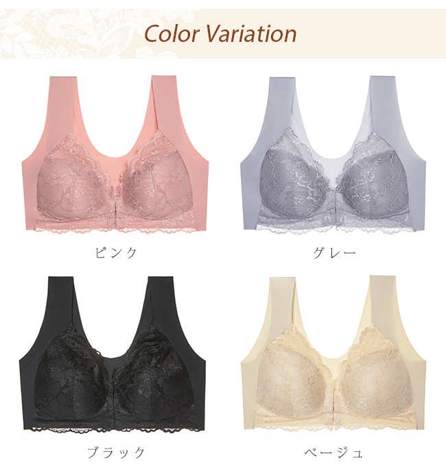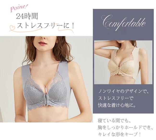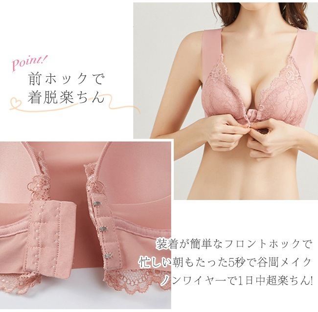 ナイトブラ フロントホックブラ レース ブラジャー 美胸 24時間使える ノンワイヤー シームレス インナー 下着 リラックスブラ 前ホック 肌着