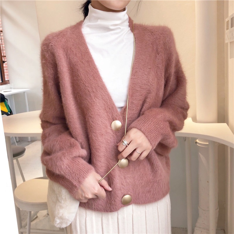 ニットカーディガン レディース ニット カーディガン 秋 冬 春 起毛ニット トップス ゆったり ボタン ドロップショルダー カーディガン