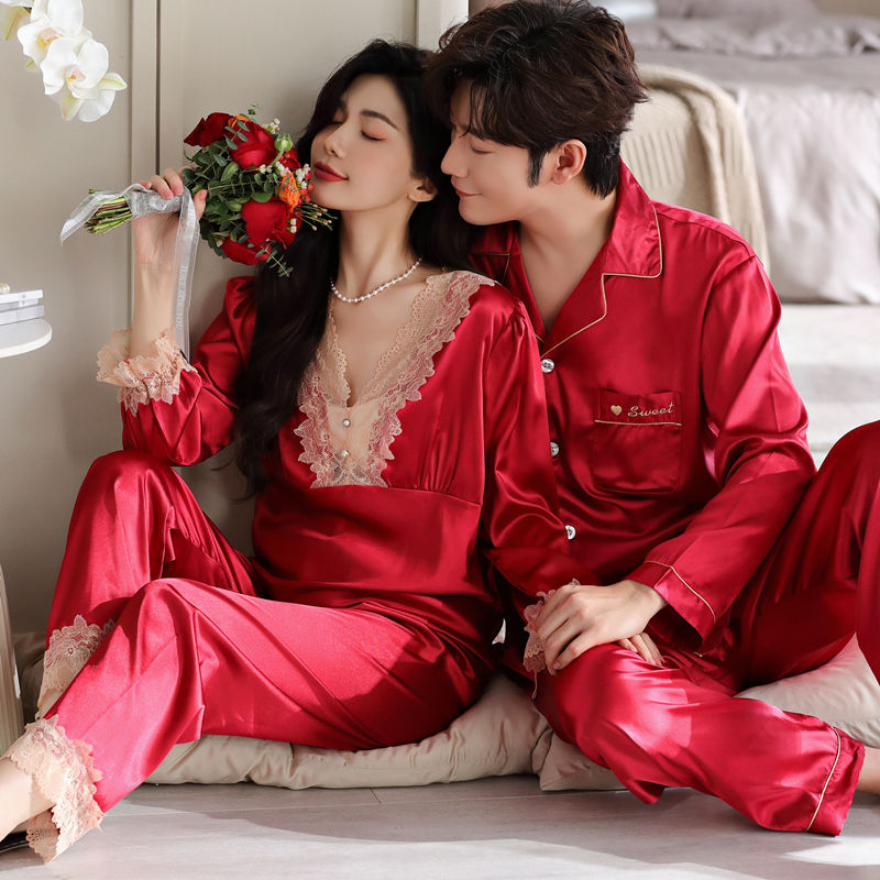 セットアップ ルームウェア ニッチデザイン 可愛い パッチワーク レース パジャマ 長袖 セット カップル アイスシルク ホームウェア 二点セット 母の日