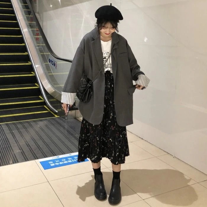 秋アウター スーツ2024春秋新作ブレザーカジュアル韓国版ミディアムブレザートップス学生ゆったり その他 アウター