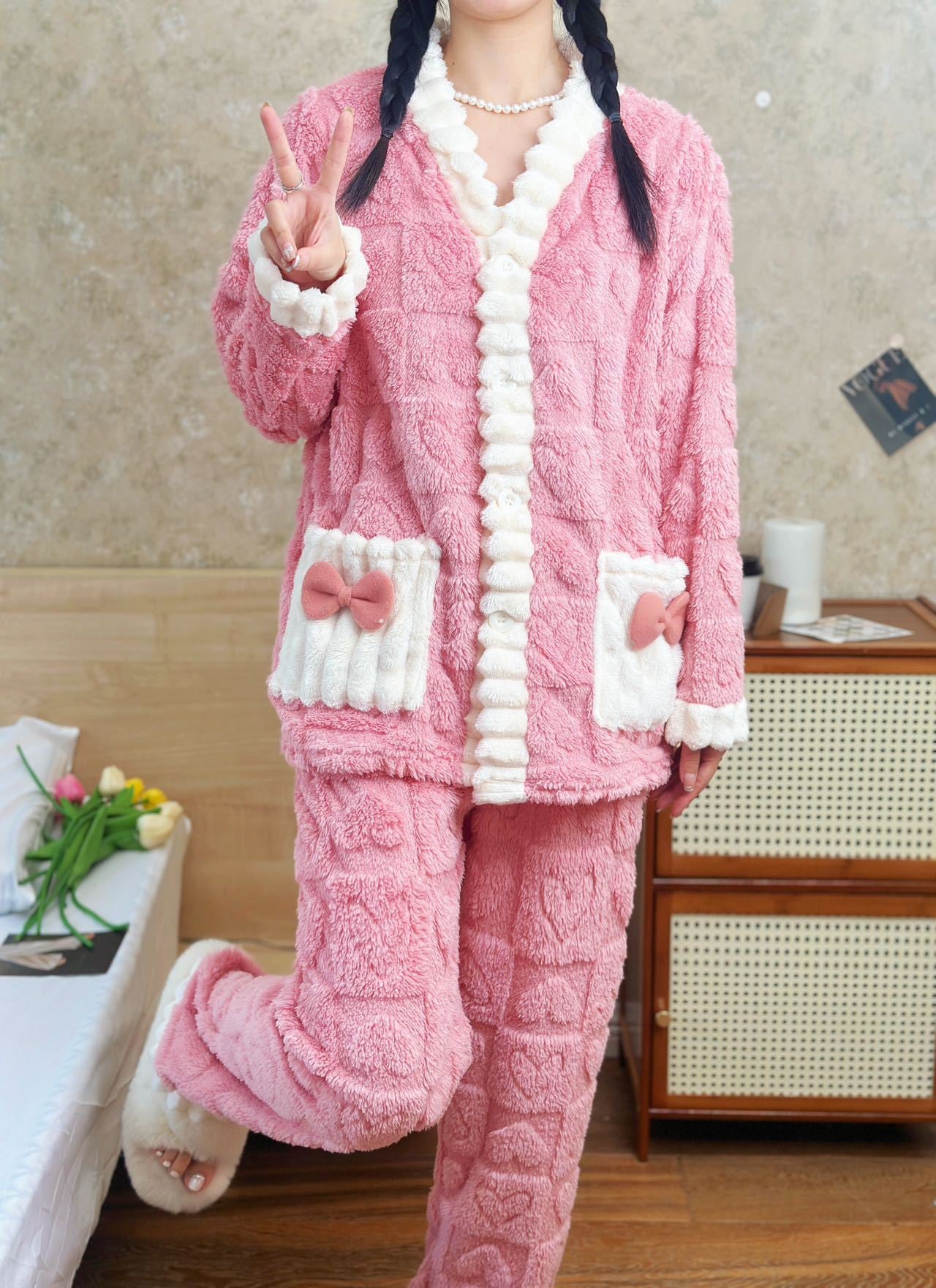 パジャマ ふわもこ 超保温モテルームウェア 裏起毛 超保温ふんわり肌触りスウェットルームウェア パジャマ