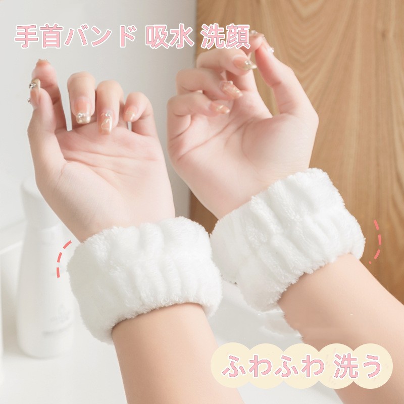 2点セット 洗顔用 リストバンド 手首バンド 吸水 洗顔 ウォッシュバンド 袖口 袖 腕 服 濡れ防止 シュシュ 手首用 ふわふわ 洗う 化粧落とし 超吸水 ins バンド 女性