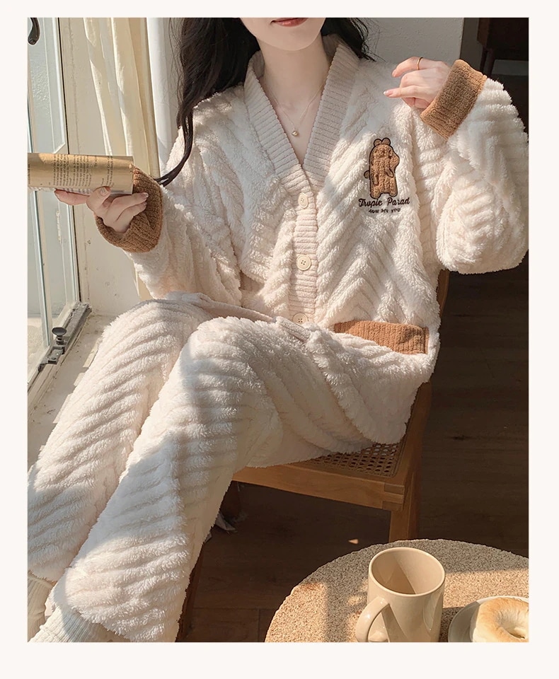 冬新作 レディース パジャマ ルームウェア 防寒 女性用 寝間着フランネル上下セット 暖かい スウィート 厚手 もこもこ 部屋着 ナイトウェア