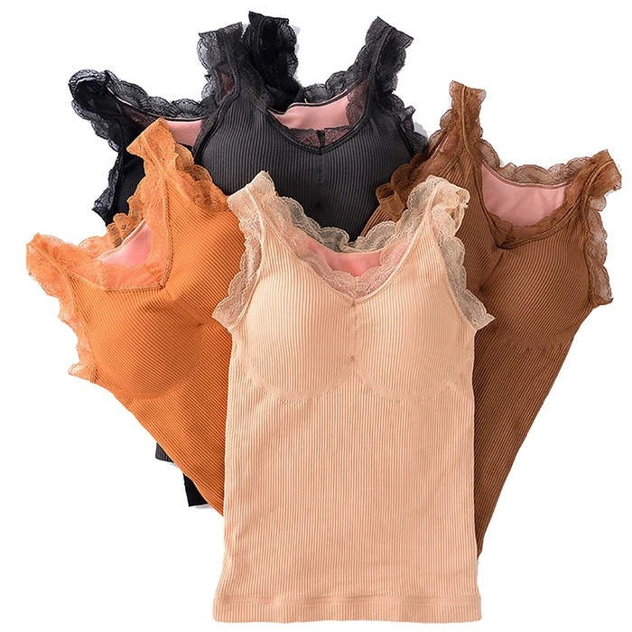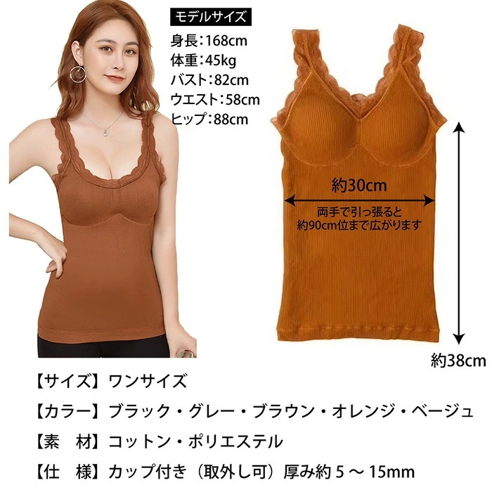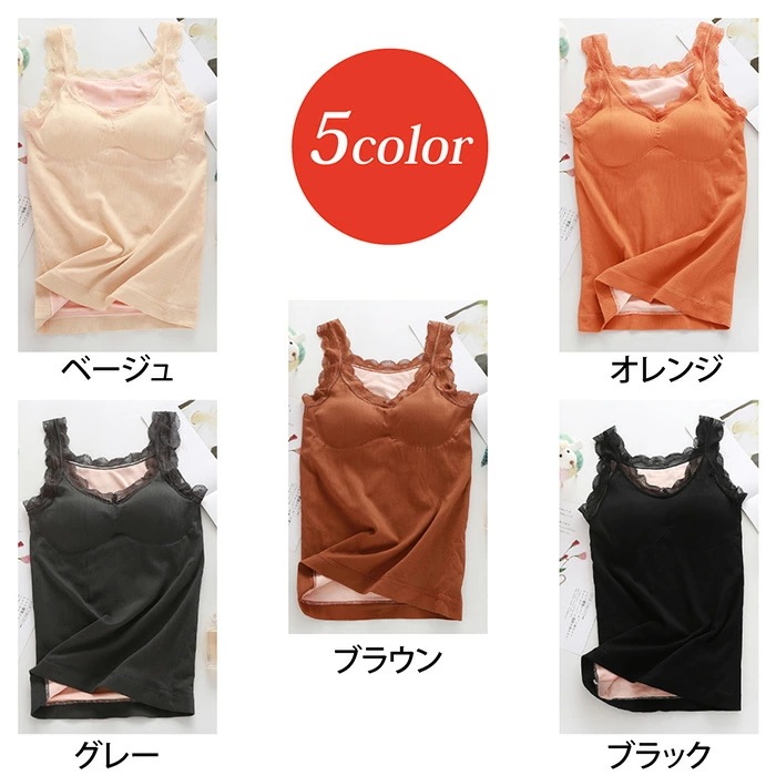 キャミソール 暖かい あったか インナー 裏起毛 温活 レース タンクトップ カップ付 ふわふわ 防寒 温活 冷え 秋 冬 重ね着 レース ナイトブラ カップ付 黒 ブラック ピンク