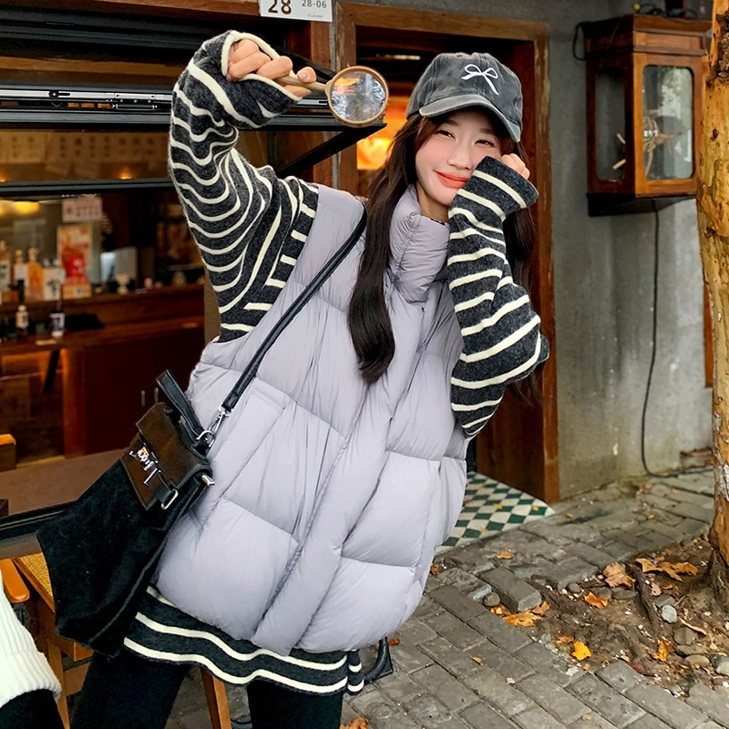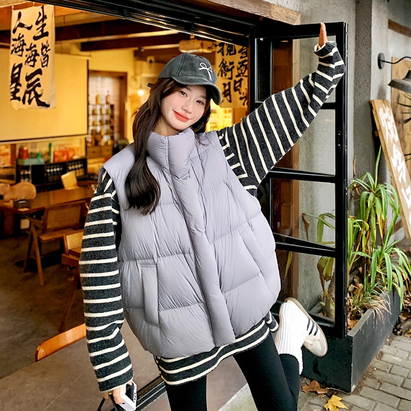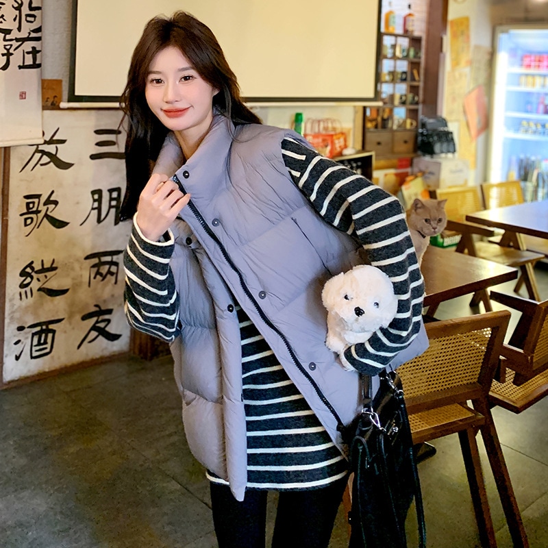 韓国版ファッション百合白鴨絨立領羽毛ベスト2024新型小柄保温厚手ジャケット ベスト