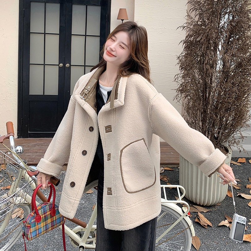 両面にスエード毛皮一体ラム毛皮のコート2024新型厚手小柄機関車綿入れ ダウンジャケット コート