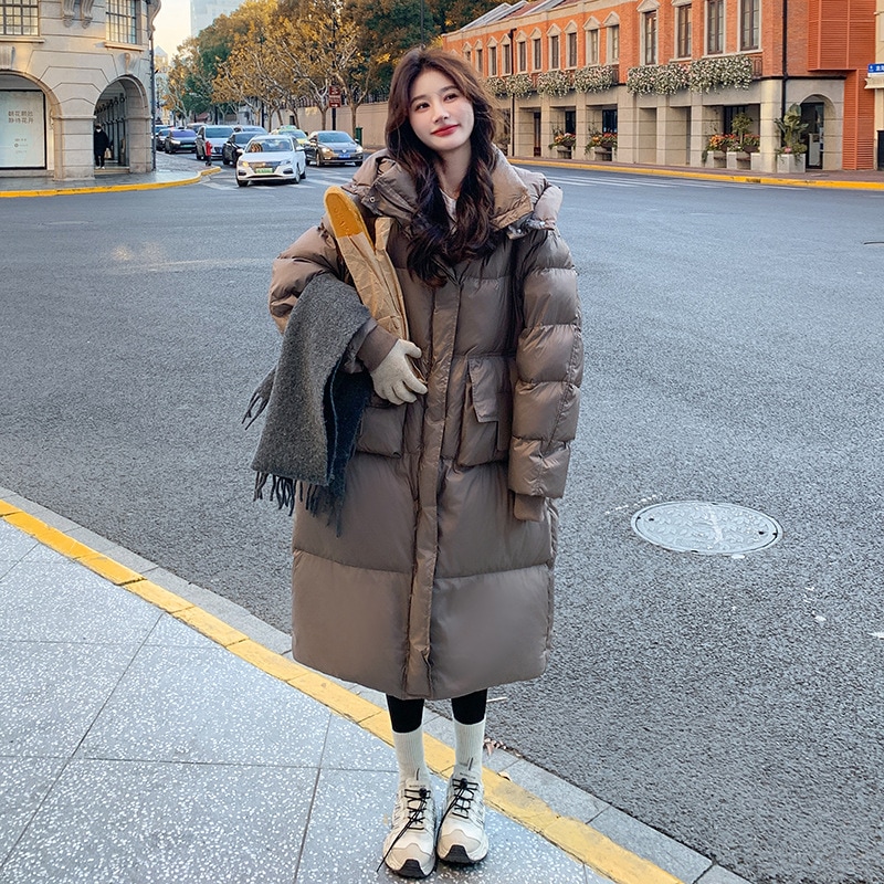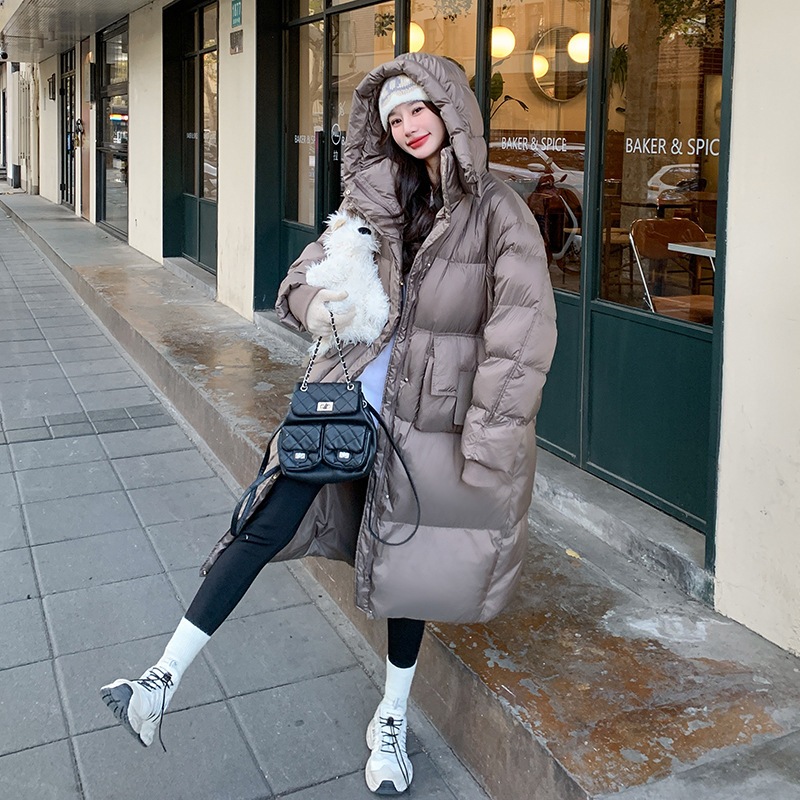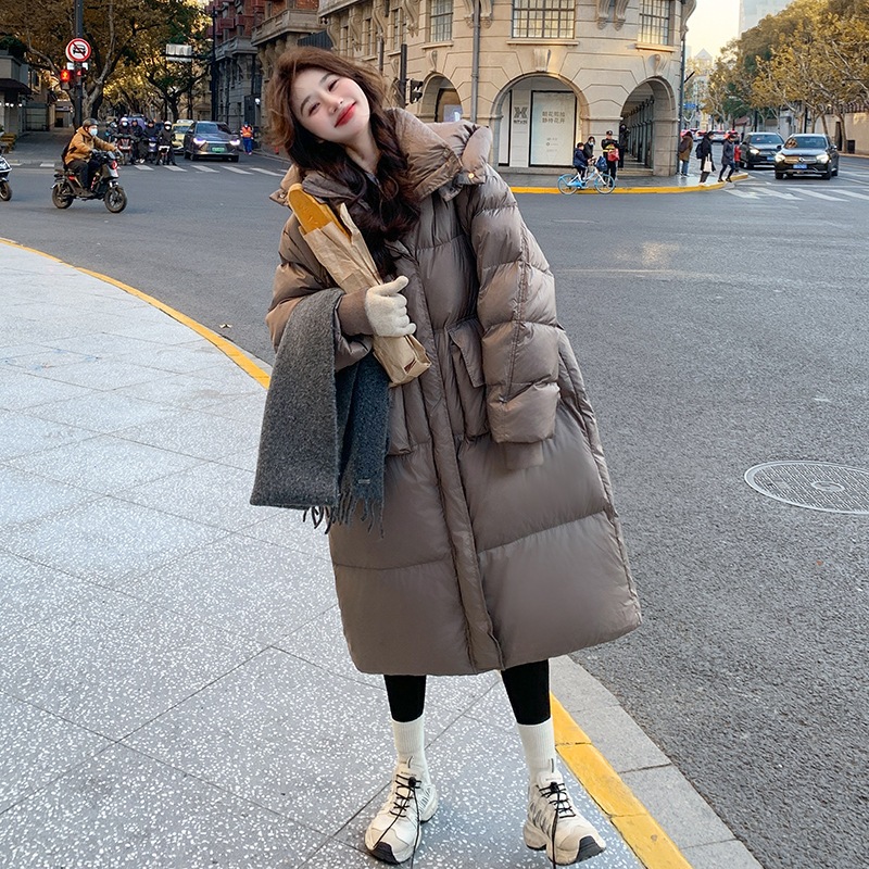 韓国版ゆったり白アヒルの羽毛ダウン2024新型ファッションカジュアルロングワンピース厚手のパン着 ダウンジャケット コート