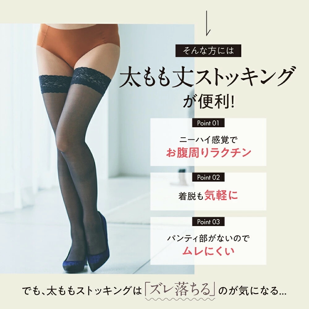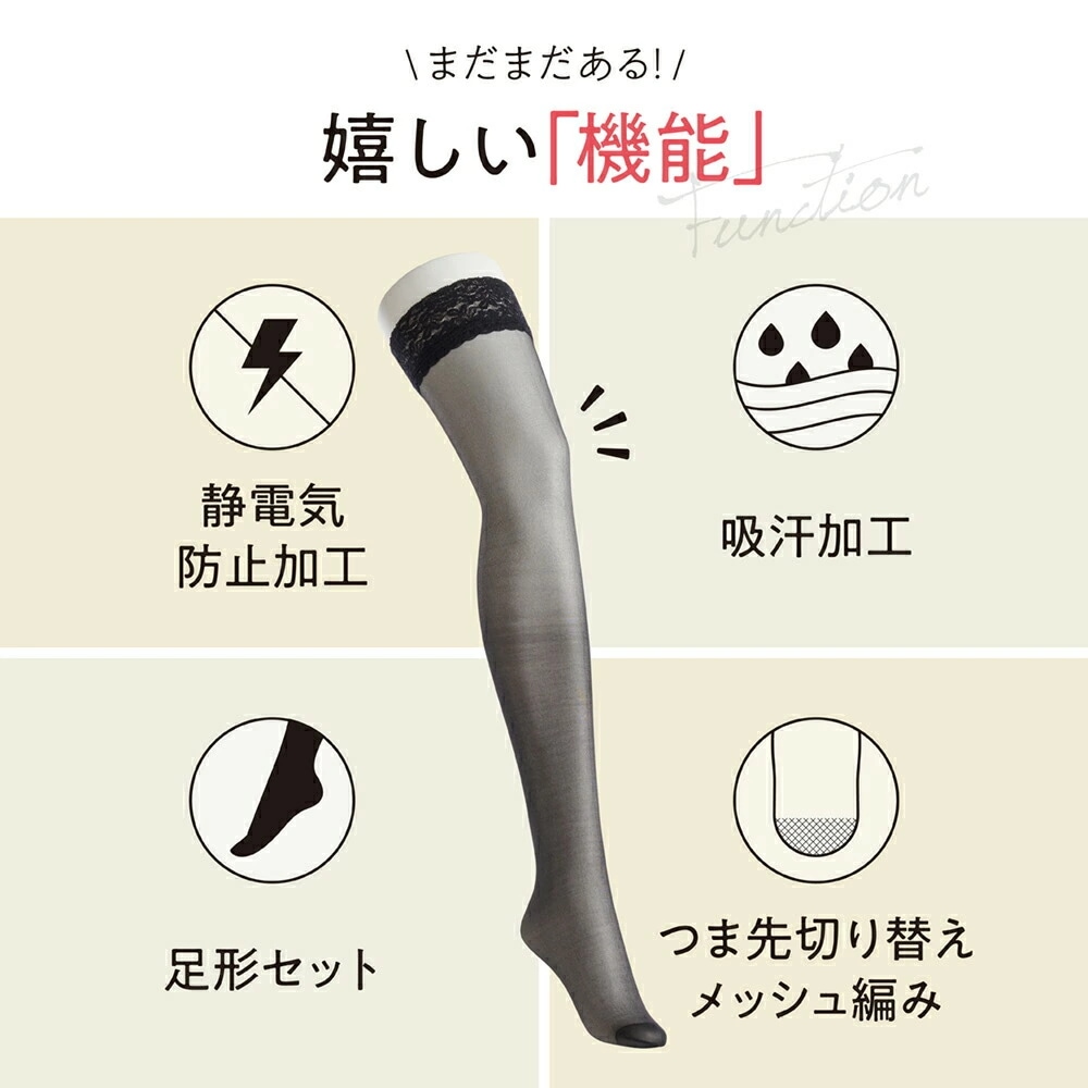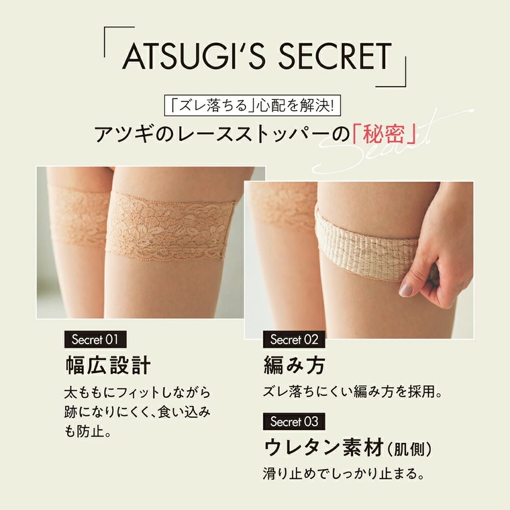 ATSUGI ストッキング ひざ上 太もも ショート 太もも丈 膝上 セパレートストッキング ベージュ 肌色 黒 プレーン 無地 レースストッパー つま先補強 静電気防止 ガ