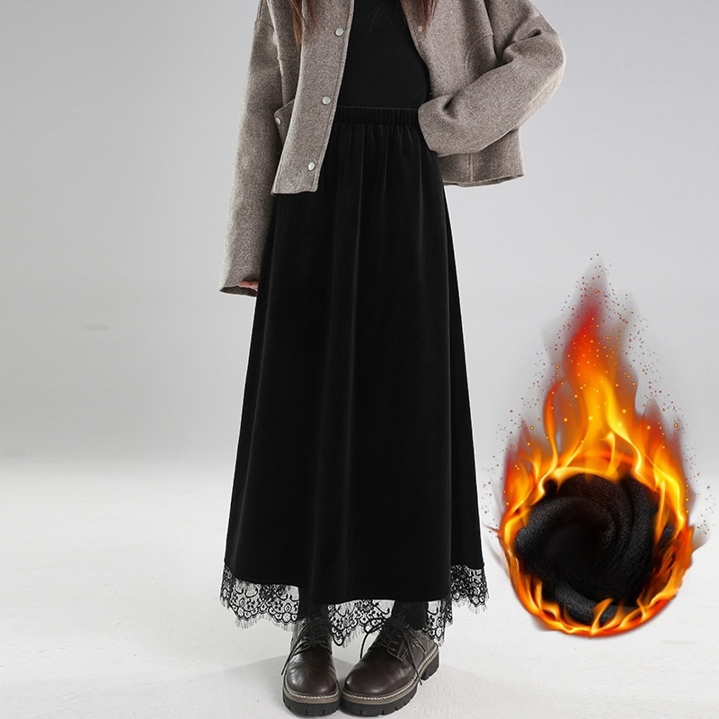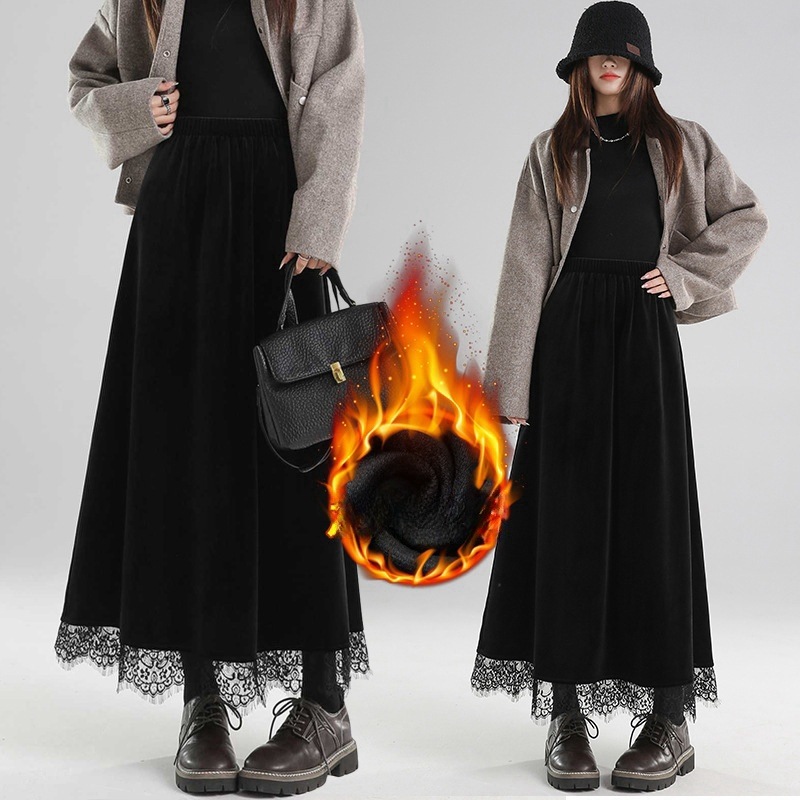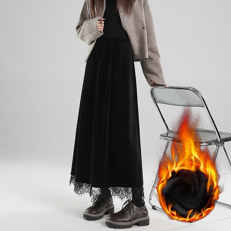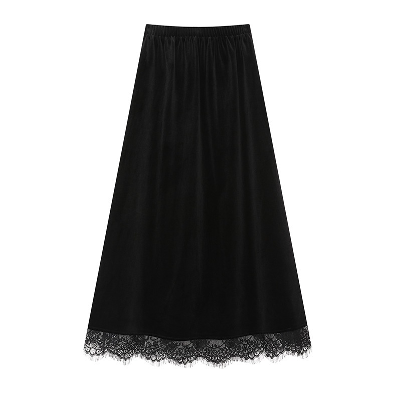 パッド入りゴールドベルベットビスチェスカート女性秋冬ハイウエストドレープレーススプライシング単語傘スカート大スイングロングスカート ロングスカート