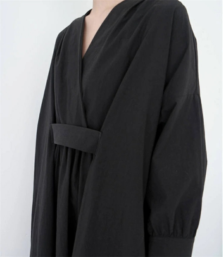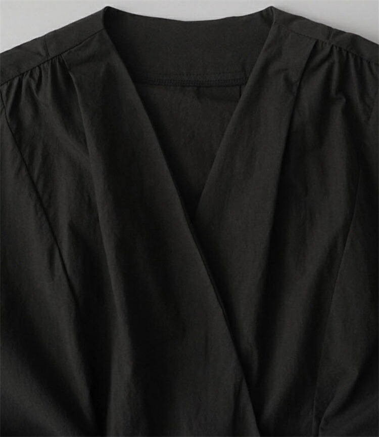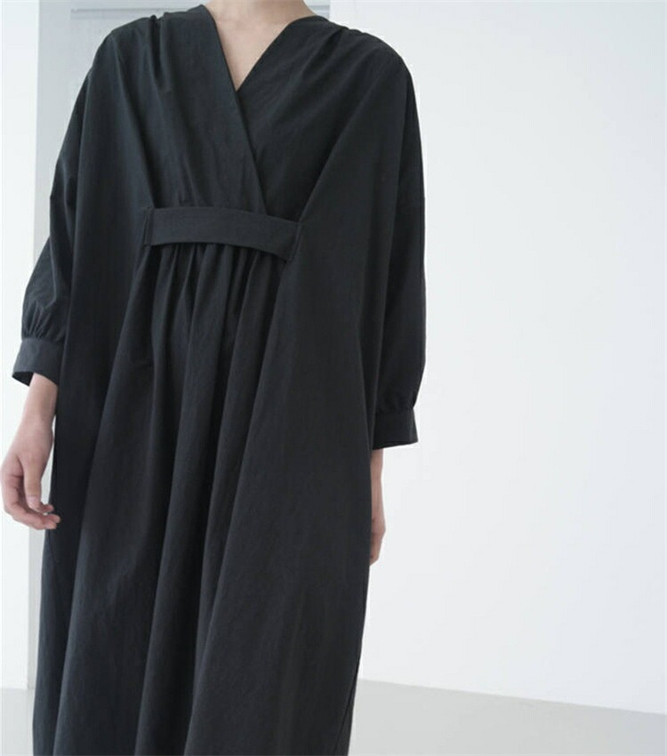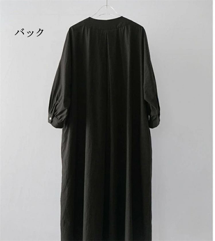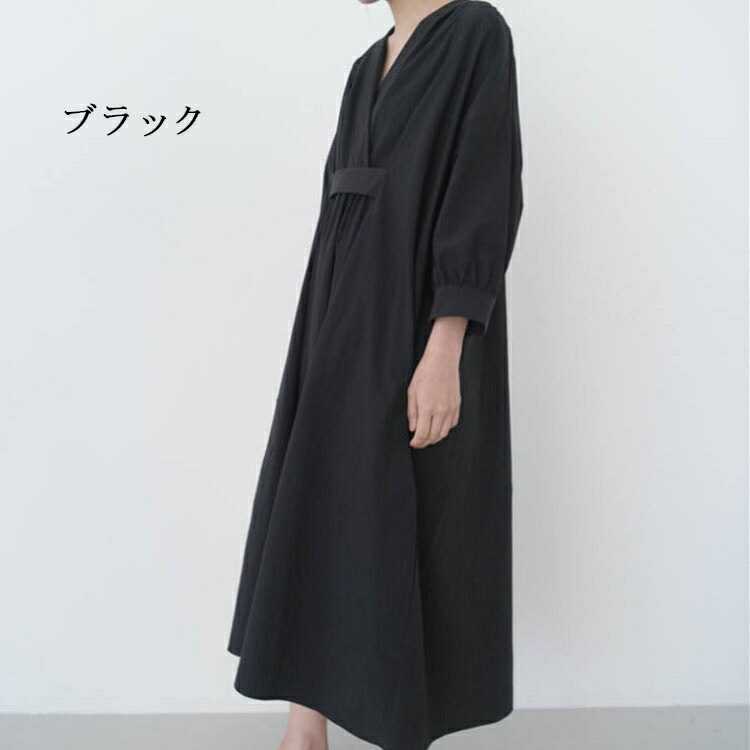 ロングワンピース レディース きれいめ 春 秋 冬 長袖 マキシワンピース タック ギャザー マキシ丈ワンピース 黒 ワンピース ゆるっと 綿 麻 シャツワンピース ロング Vネック 無地 ワンピース