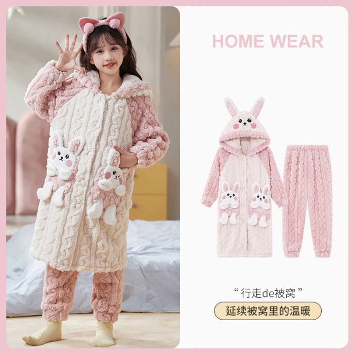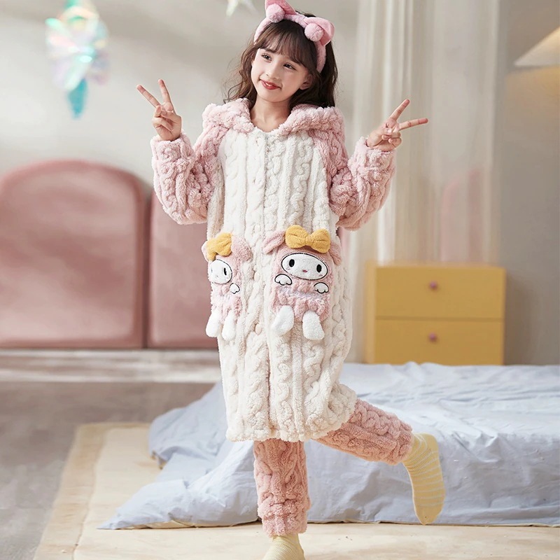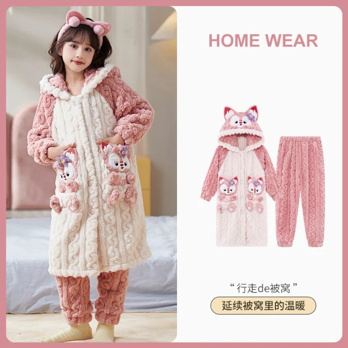 子供用パジャマ秋と冬の新しいスタイルクロミコーラルベルベット女の子プリンセス女の子ホーム服厚いネグリジェスーツアニメコミック パジャマ