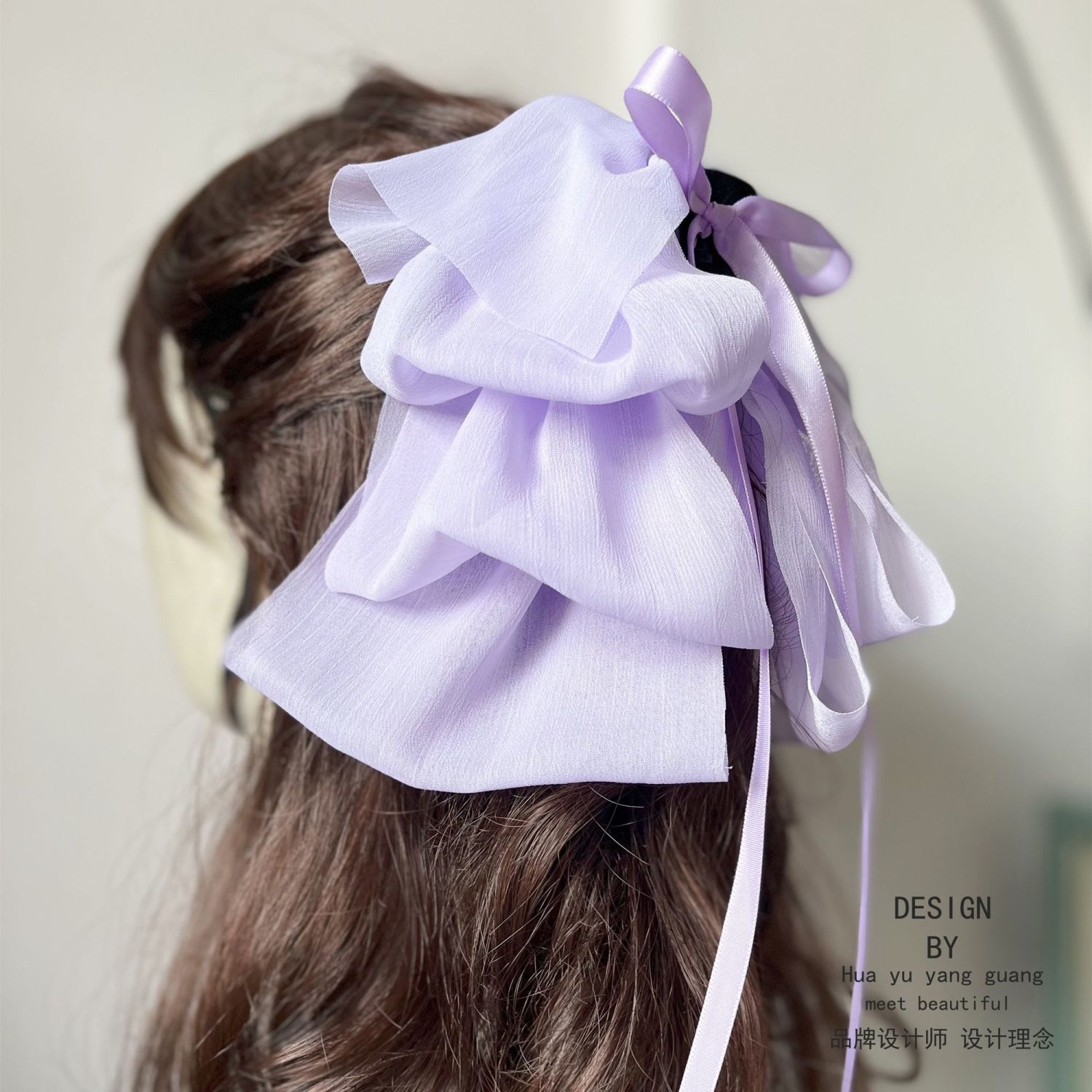 3層の蝶結びヘアクリップシフォンふんわり頭花の蝶結びヘアクリップヘップバーン風バタフライクリップドローンと同じです ヘアクリップ