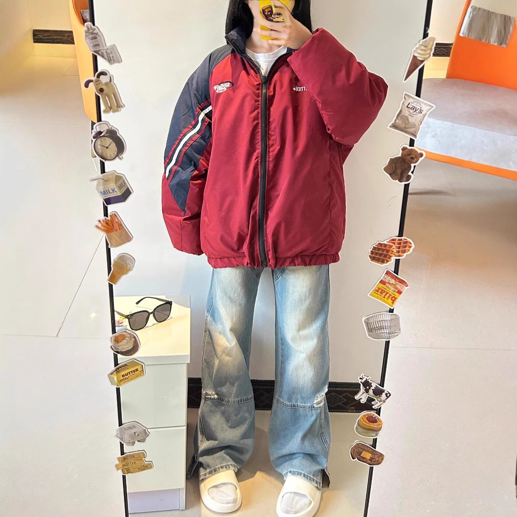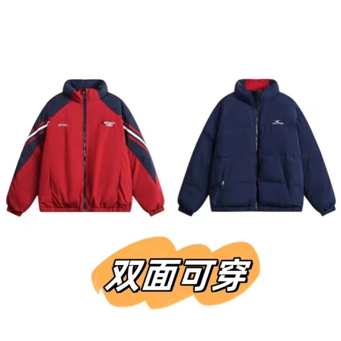 良い品質の綿を入れた両面着の綿入れ男女を厚くした韓国系パッチワーク学生ジャケット綿入れカップルコート ダウンジャケット コート