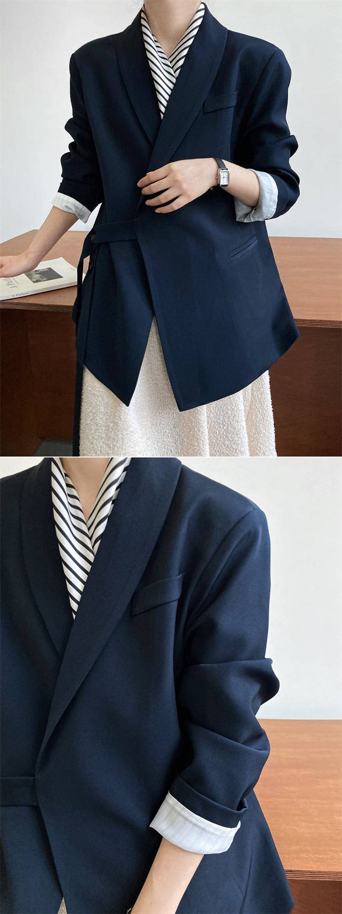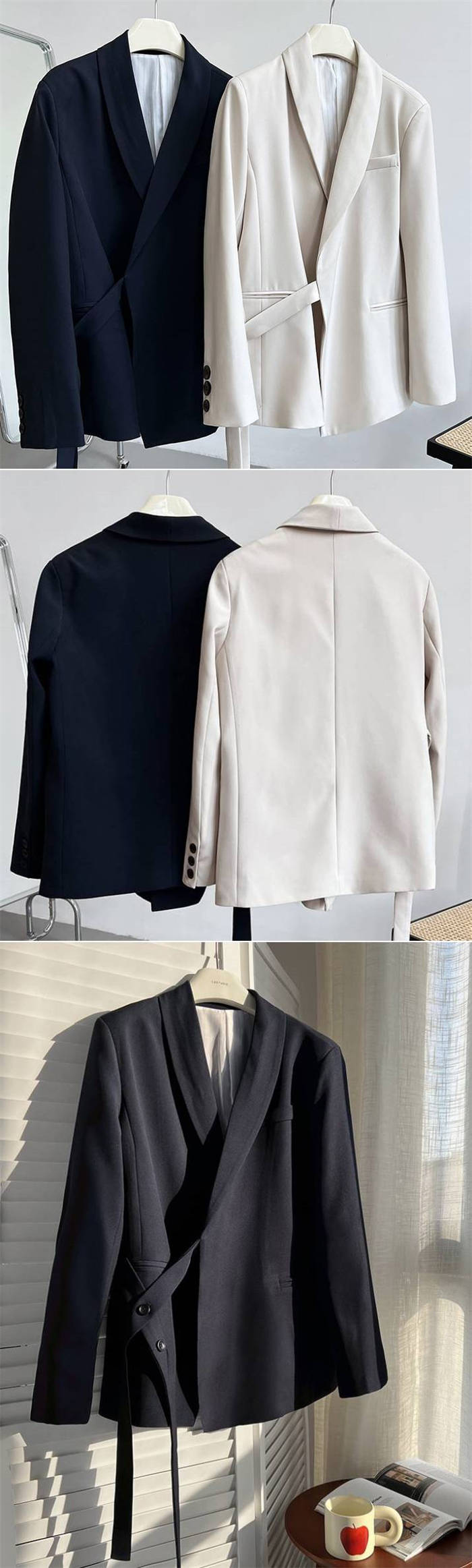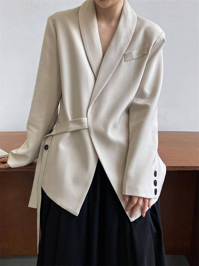 テーラードジャケット スーツ コート レディース 長袖 無地 アシンメトリー リボン トップス テーラード ジャケット デザイン感 ゆったり 春 秋 上品感 着痩せ 大人 通勤 OL オフィス おしゃ