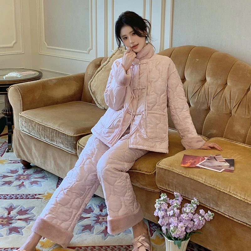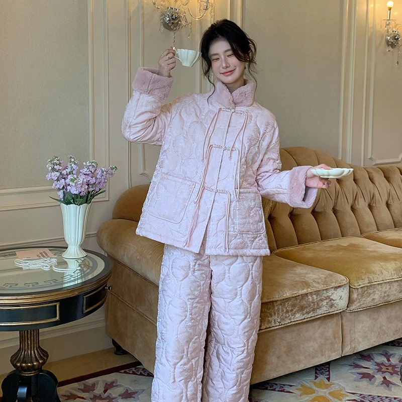 2025新作ルームウェア セットアップ 冬 新中式冬の女性用保温スーツ甘い部屋着は外で着ることができます 可愛い パジャマ レディース 秋冬 韓国 部屋着