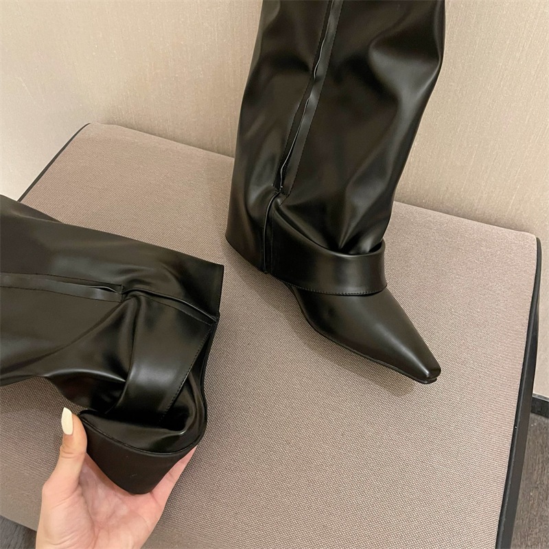 ロングブーツ レディース ブーツ 美脚 ジョッキーブーツ PUブーツ スッキリ レトロ 太ヒールブーツ 美脚 黒 ロングブーツ