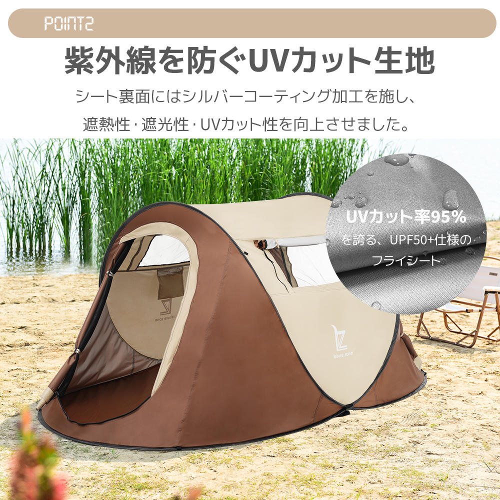 テント 2人用 ポップアップテント ワンタッチ おしゃれ 折りたたみ 簡易テント 簡易 簡単 Brown Nylon Mesh