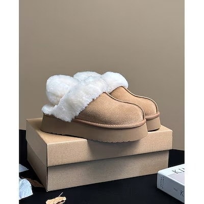 接触温感 ムートンブーツ 韓国人気 レディース モフモフ スリッポン 厚底 プラットフォームソール 防水 撥水 身長アップ 防水 4cm台 滑り止め フラットシューズ