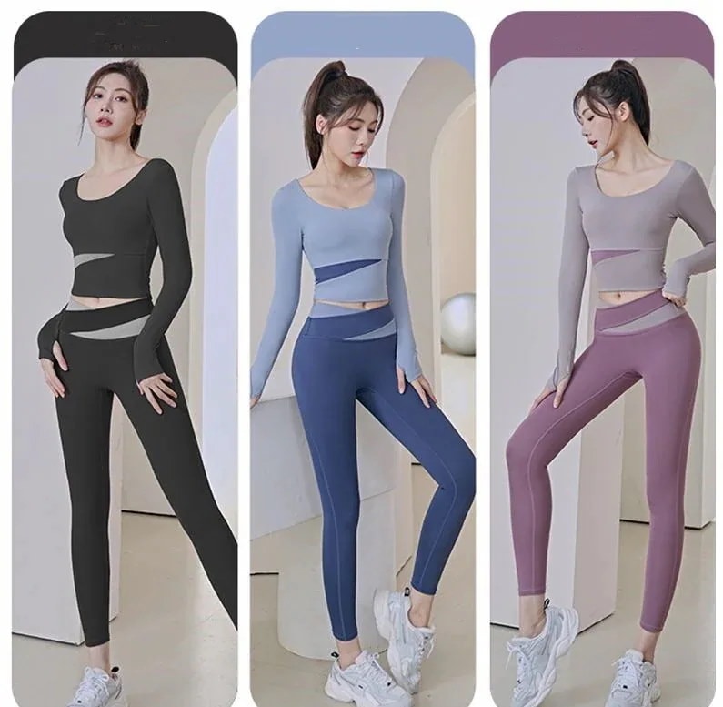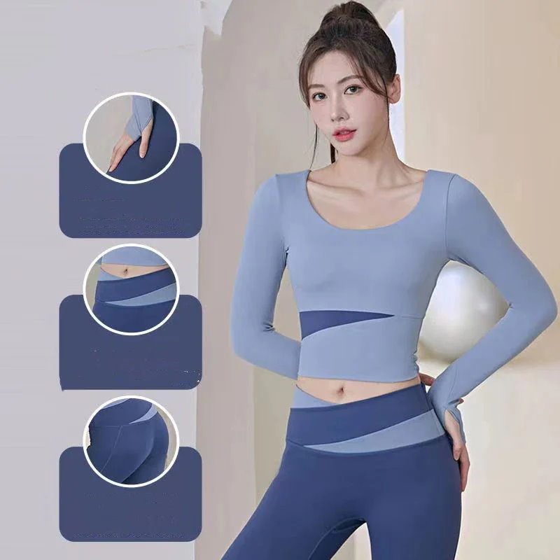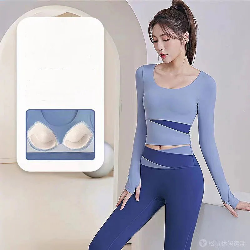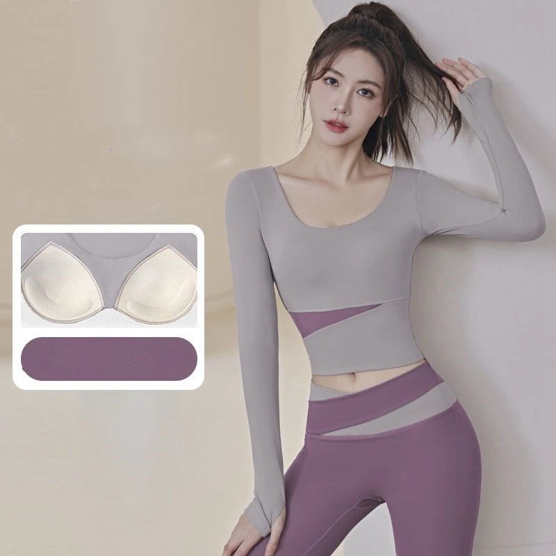 ファッションヨガウェア セットアップ ヨガトップス 長袖 トップス ノーブラ フィットネスウェア スポーツ パンツ 吸汗 速乾 レディース 上下セット 運動セット