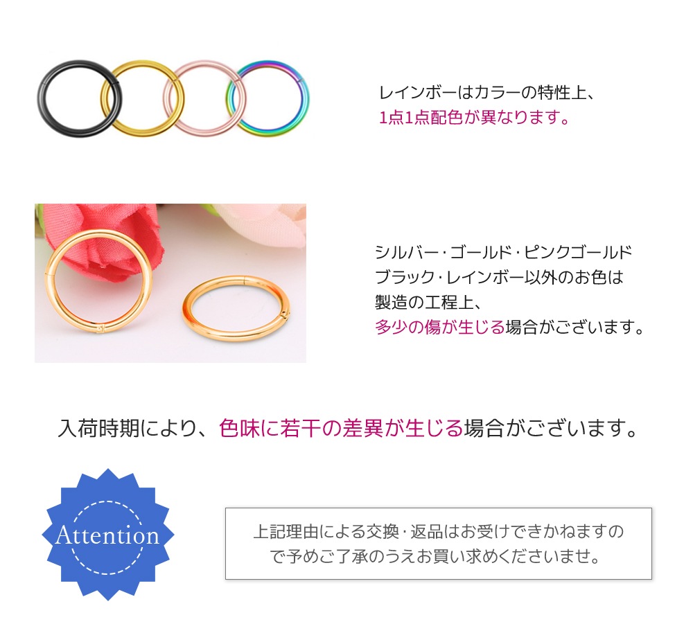 ボディピアス 軟骨 ピアス リングピアス 金属アレルギー対応 レディース 18G 16G 14G その他