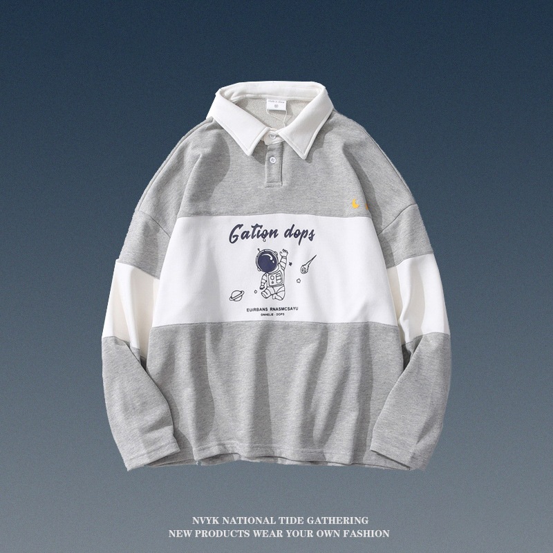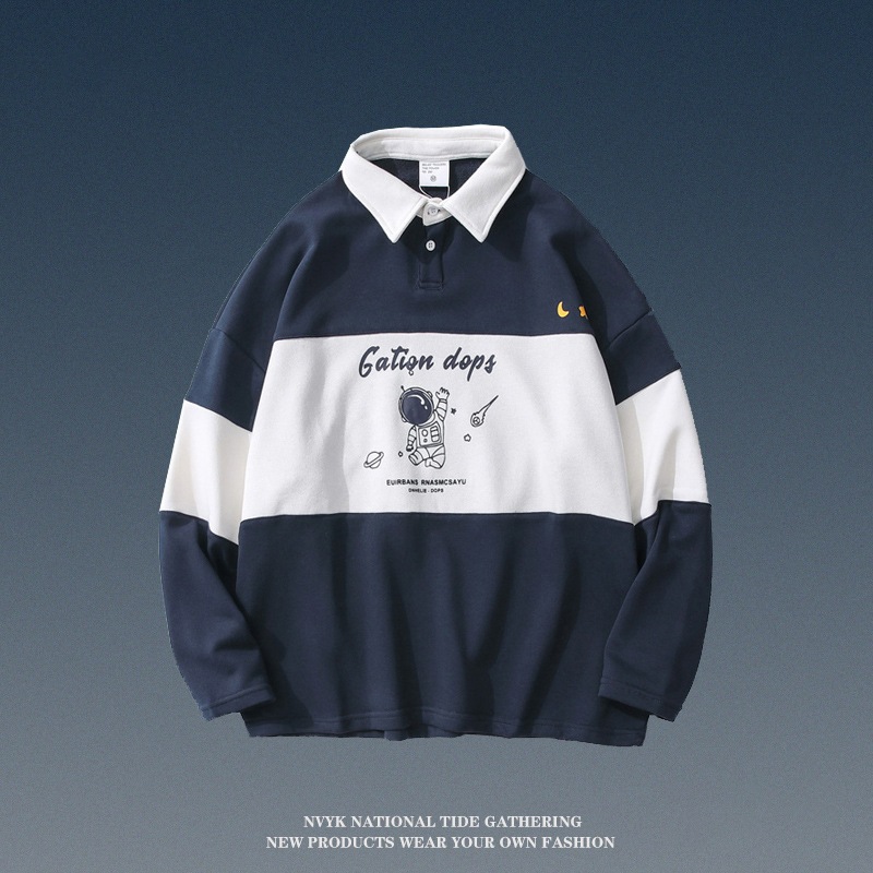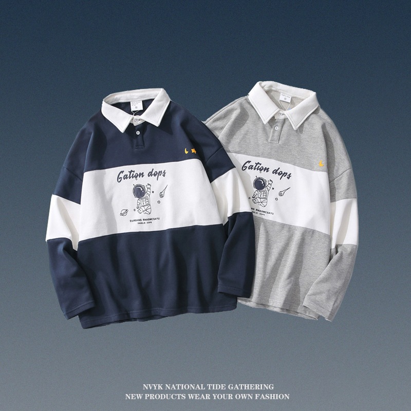 2色 宇宙飛行士 ポロシャツ 男女兼用 長袖 薄手 裏起毛 春秋冬 Tシャツ 学生 ゆったり ポロシャツ