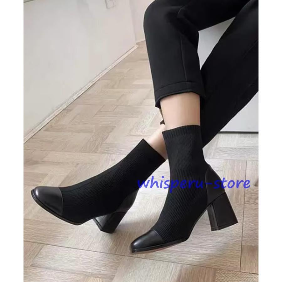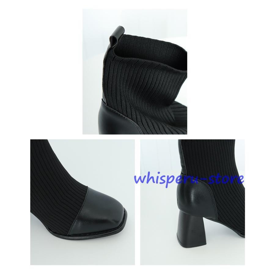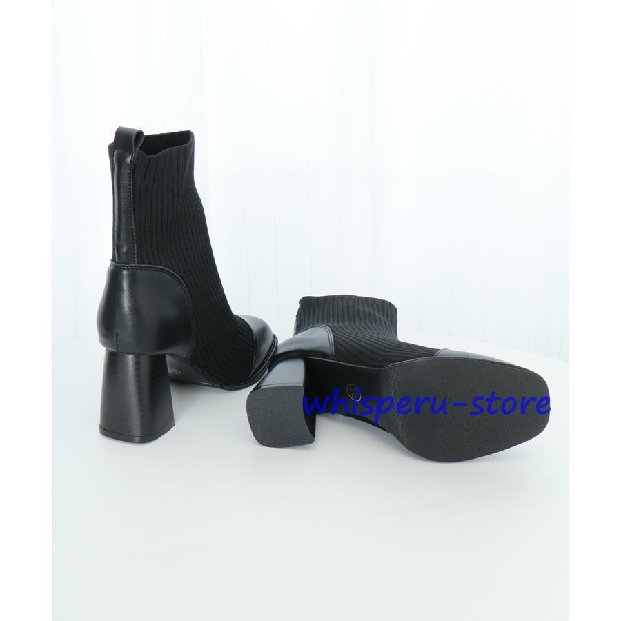 ソックス風ブーツ レディース 太ヒール ショート ミドルブーツ