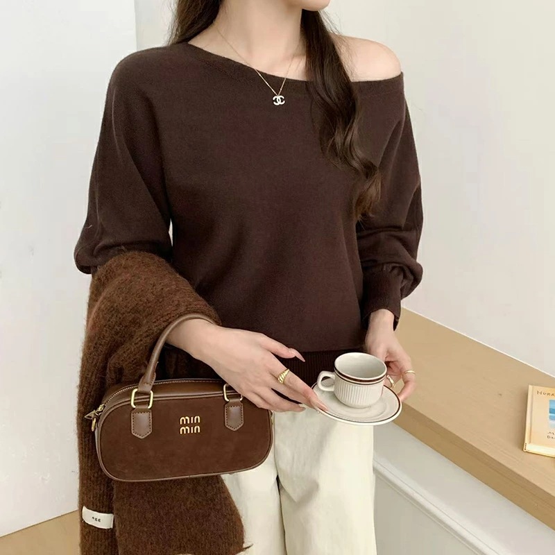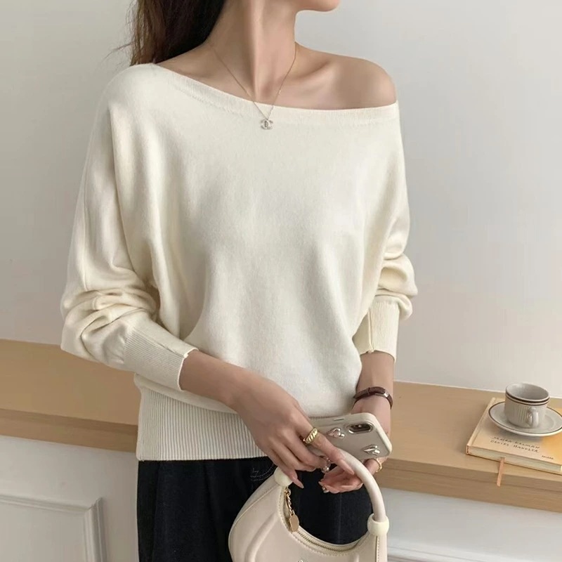ボートネックニット ワンショルダー オフショルダー オフィスカジュアル ボートネック ニット きれいめ トップス 長袖 レディース ゆったり ワンショル