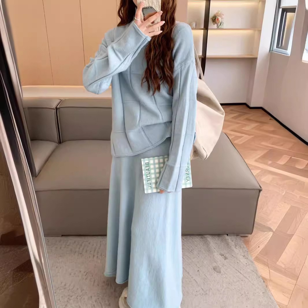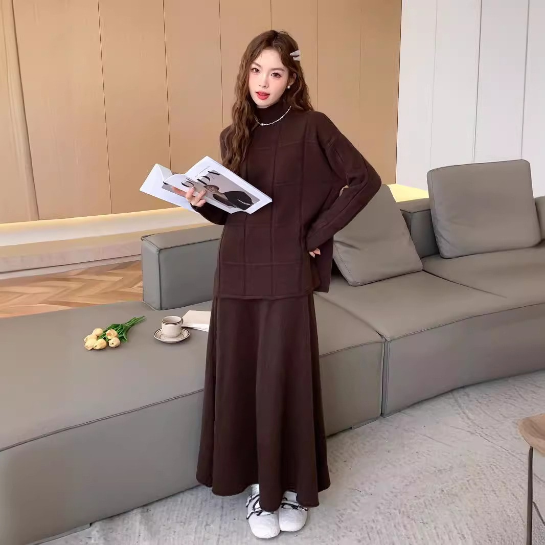 秋冬 新作 シンプル 気質 レディースセットアップ ハイネック 百掛け アウター 二点セット 上下セット セーター ニットスカート セットアップ