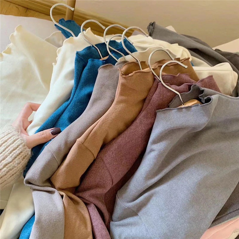 デベルベットボトミングシャツ レースネックライン ハーフハイカラースリムスリミン グプル Tシャツ カットソー
