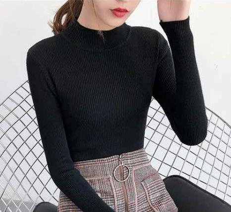 秋冬 長袖 レディース タートルネック 防寒 トップス 韓国 無地 ストレッチ 伸縮性 暖か 着痩せ ハイネック リブプチハイネック レディース 長袖 リブ編み