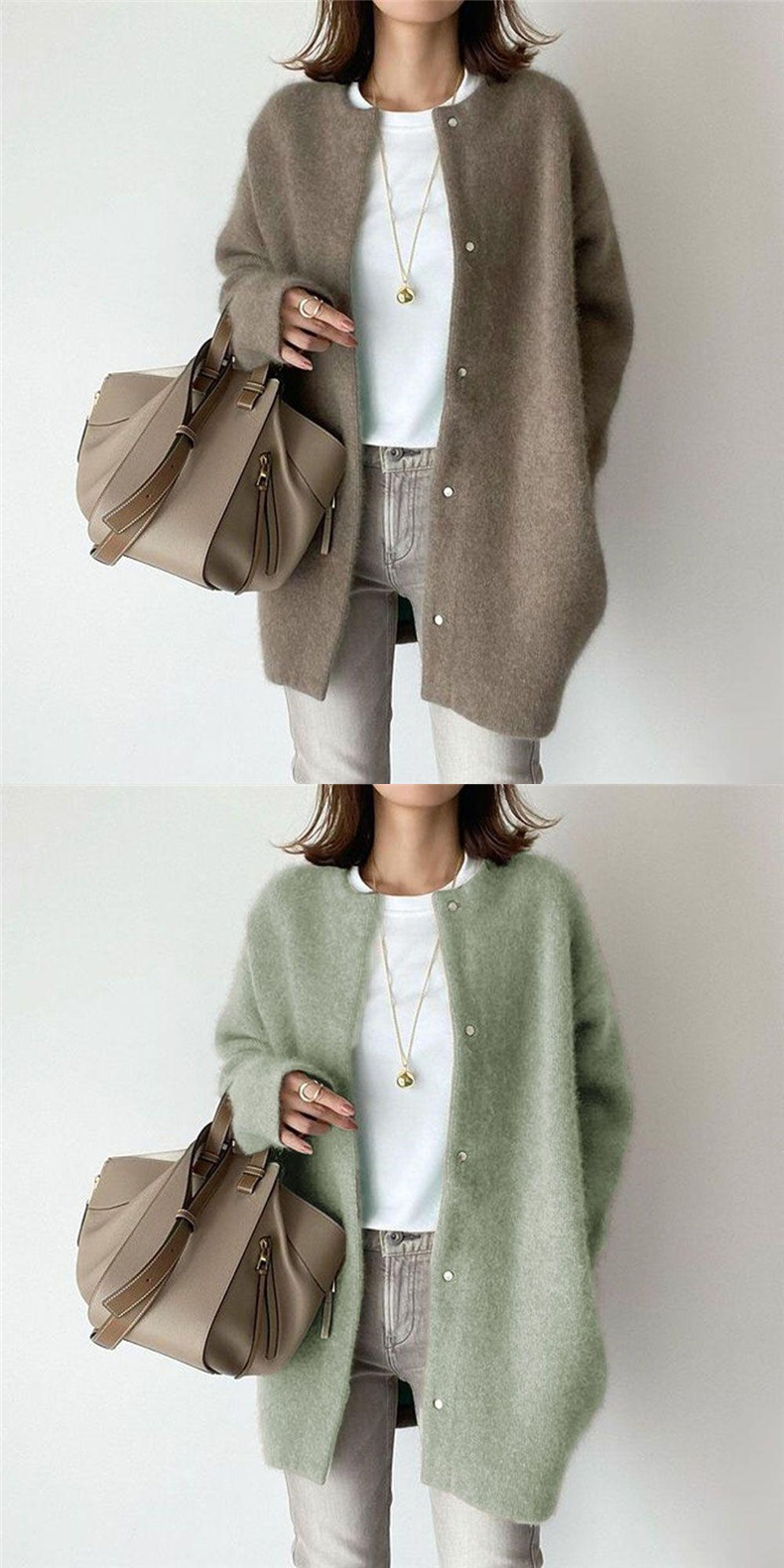 ノーカラー ニットカーディガン レディース コート アウター ゆったり 体型カバー お尻隠れ 無地 秋冬 トレンチコート