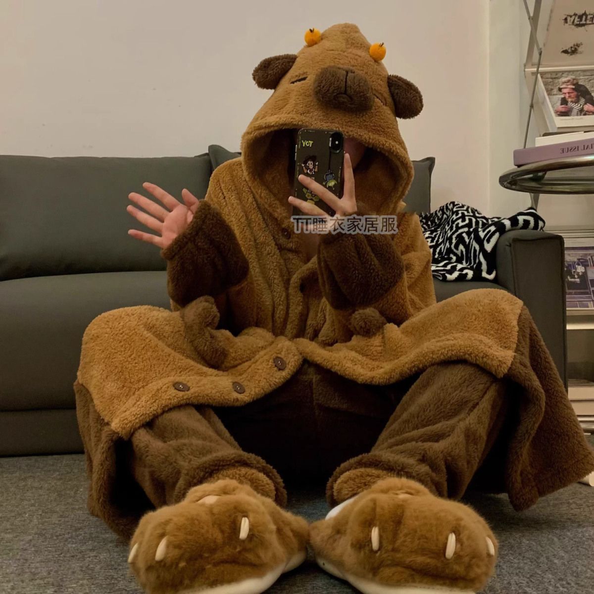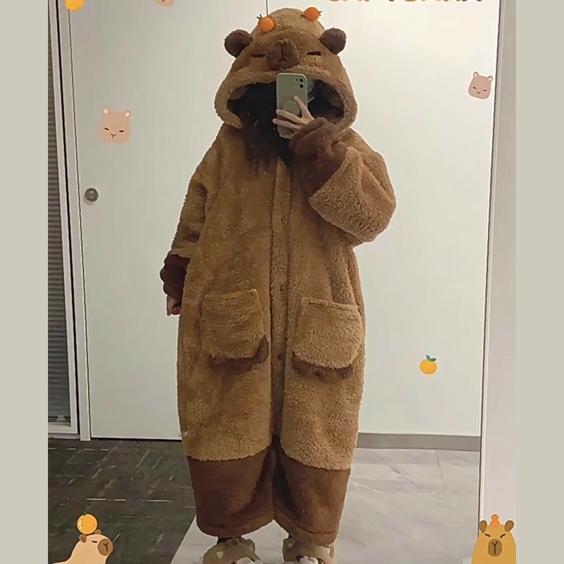 あったかルームウェアサンゴの綿毛 秋冬 カピバラパジャマ ガウン着 厚手セット ルームウェア 着ぐるみ